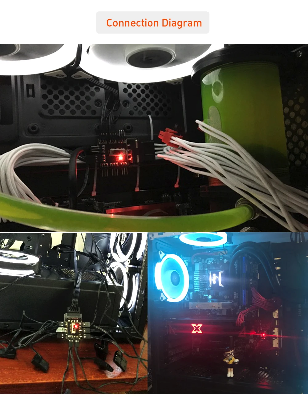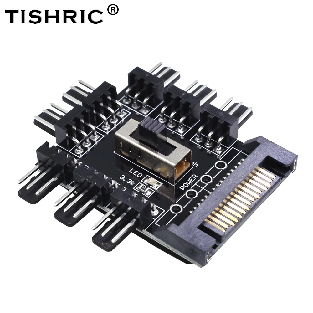 Comprar TISHRIC-Hub de ventilador de 1 a 8 3 pines, Pwm, Sata Molex, divisor, Cable de minería de PC, 12V de potencia, adaptador de controlador de velocidad de refrigeración