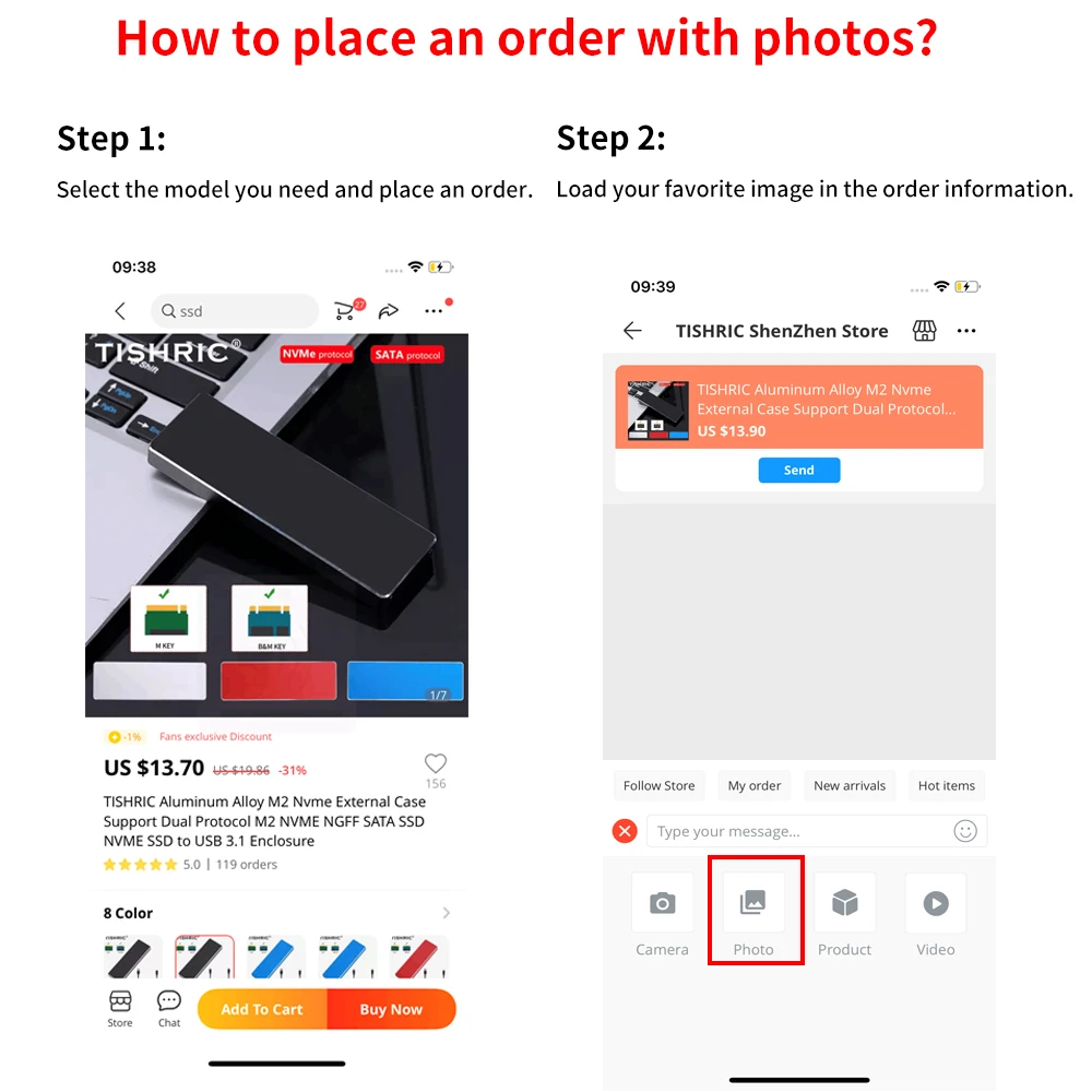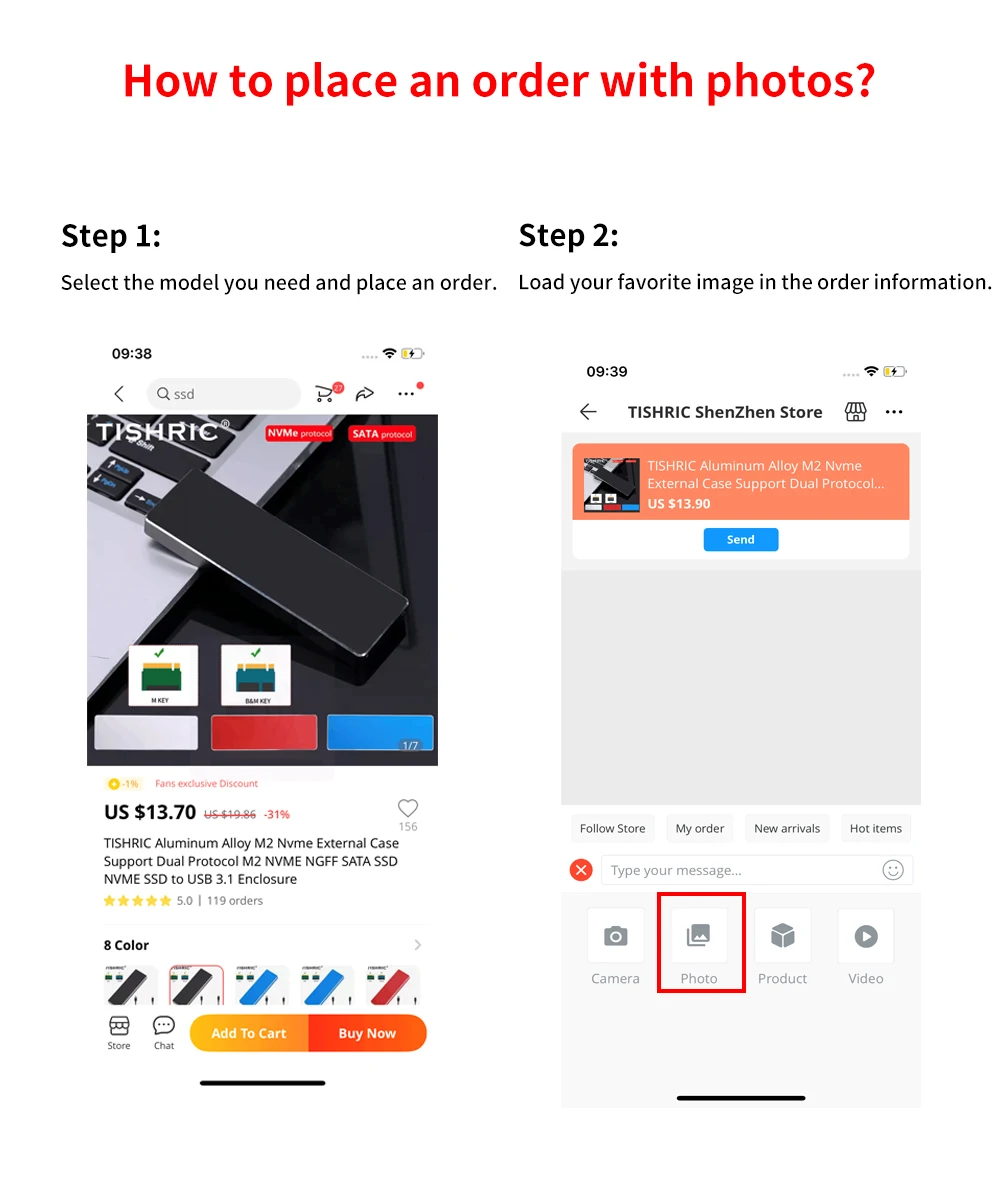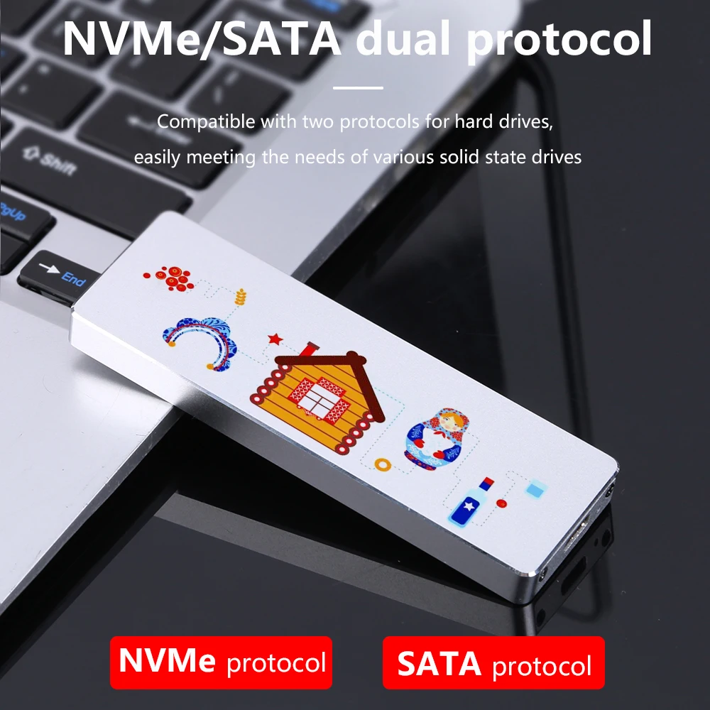 Comprar TISHRIC-Imágenes personalizadas de aluminio M2 NVME NGFF SATA SSD, soporte de protocolo Dual, carcasa Hd externa NVME SSD a USB 3,1