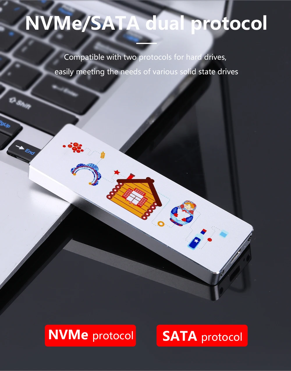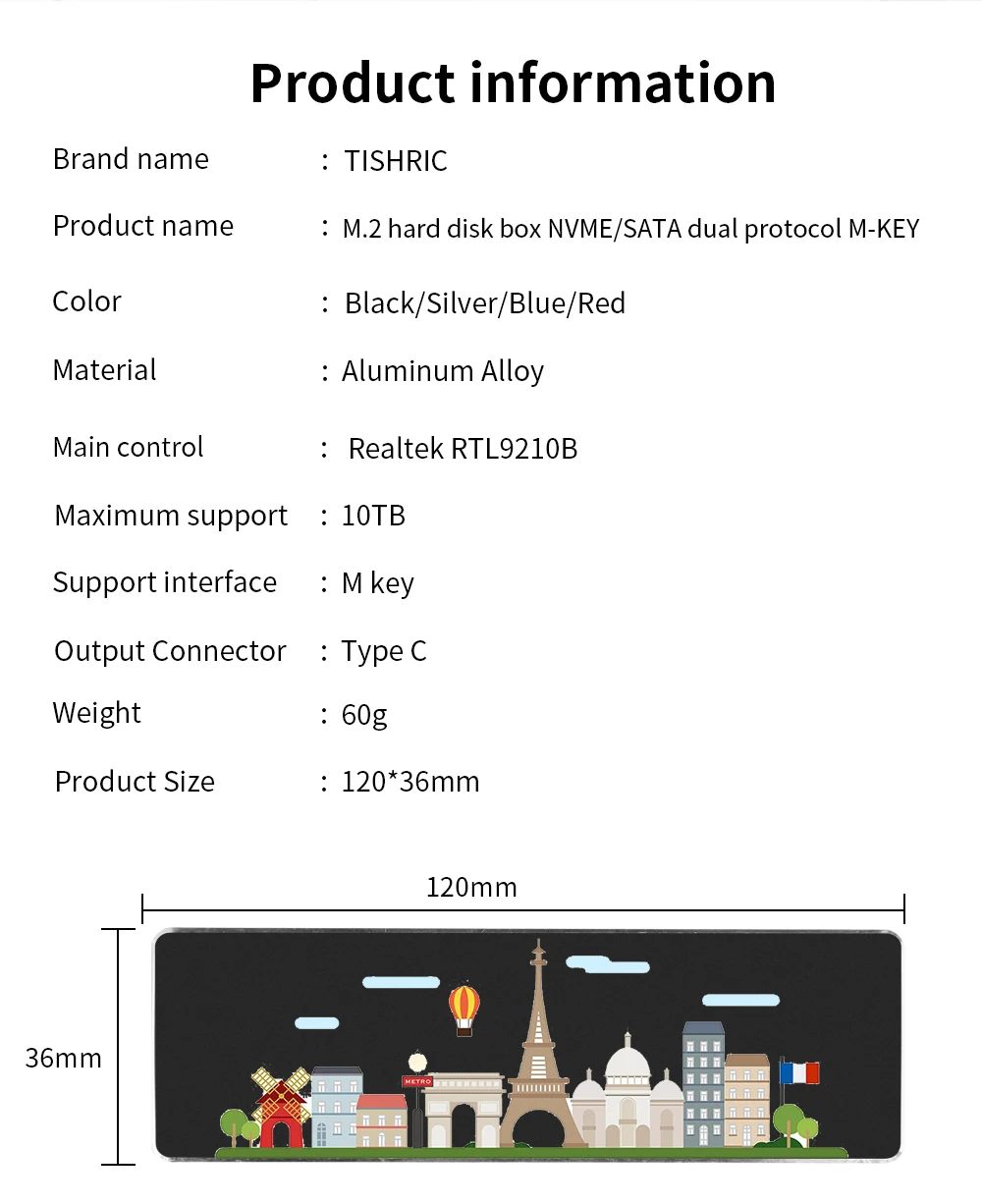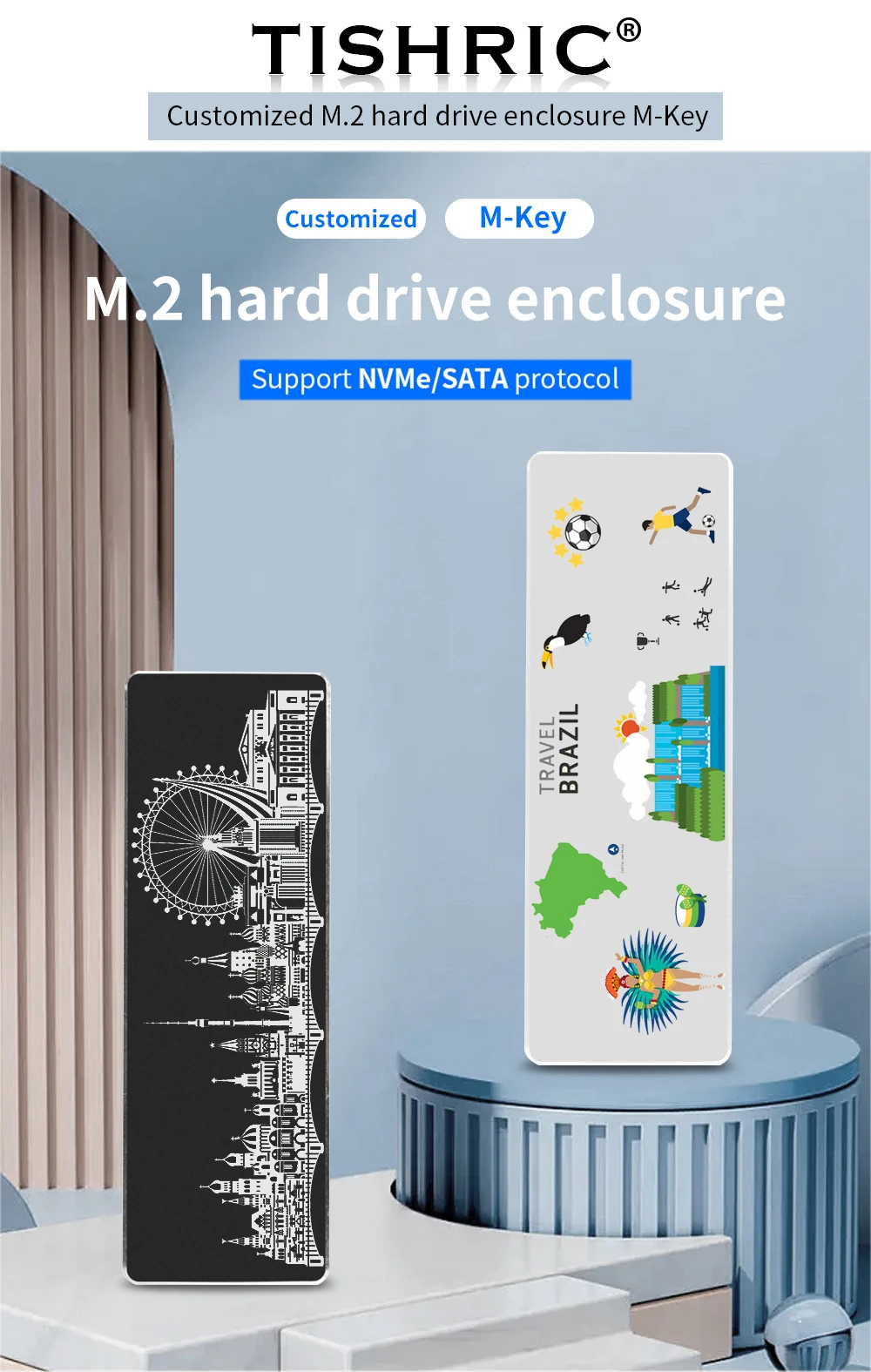 Comprar TISHRIC-Imágenes personalizadas de aluminio M2 NVME NGFF SATA SSD, soporte de protocolo Dual, carcasa Hd externa NVME SSD a USB 3,1