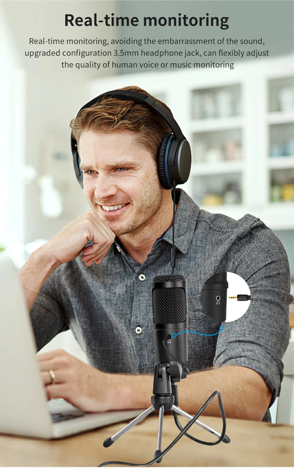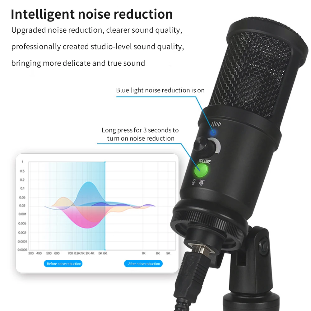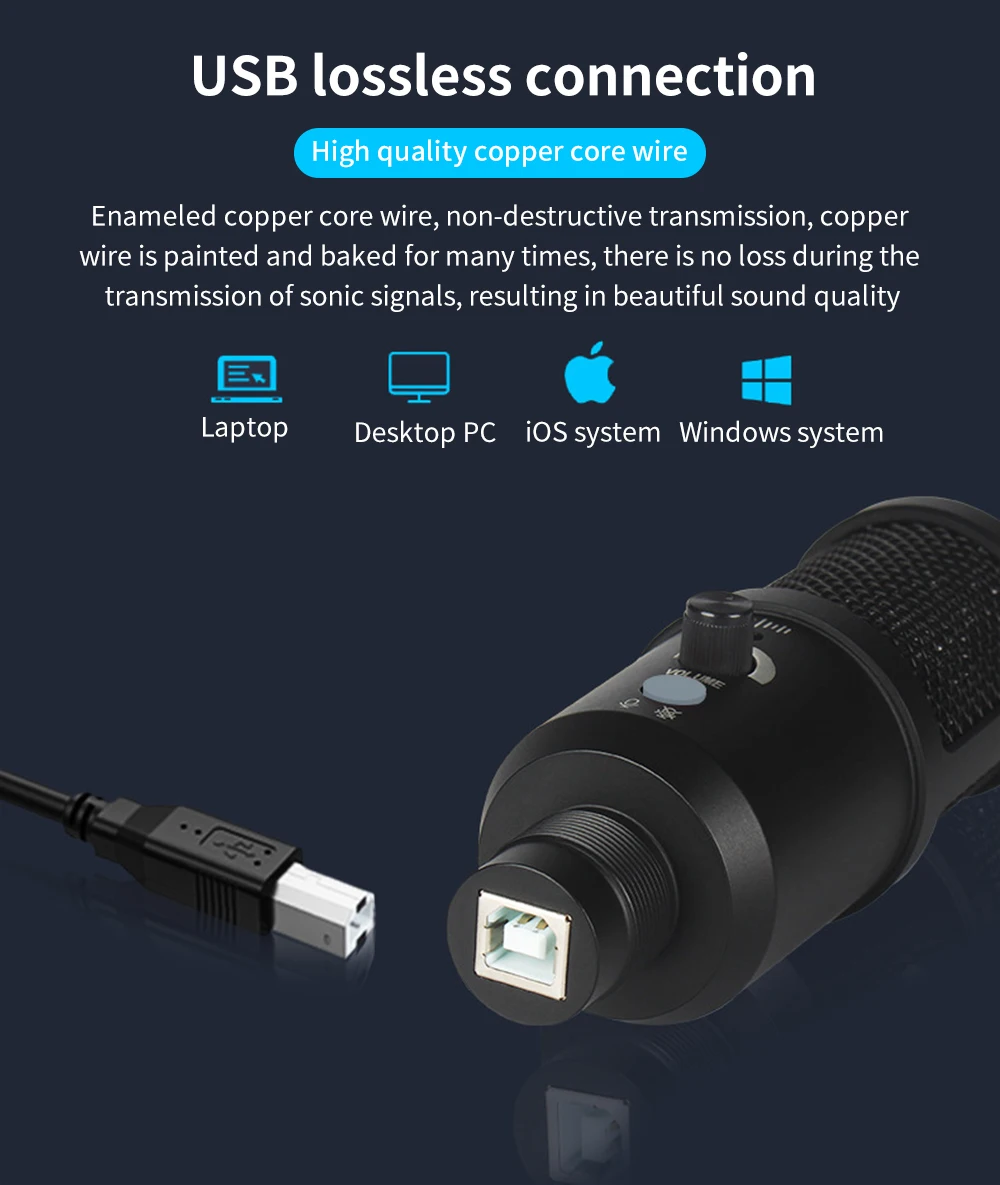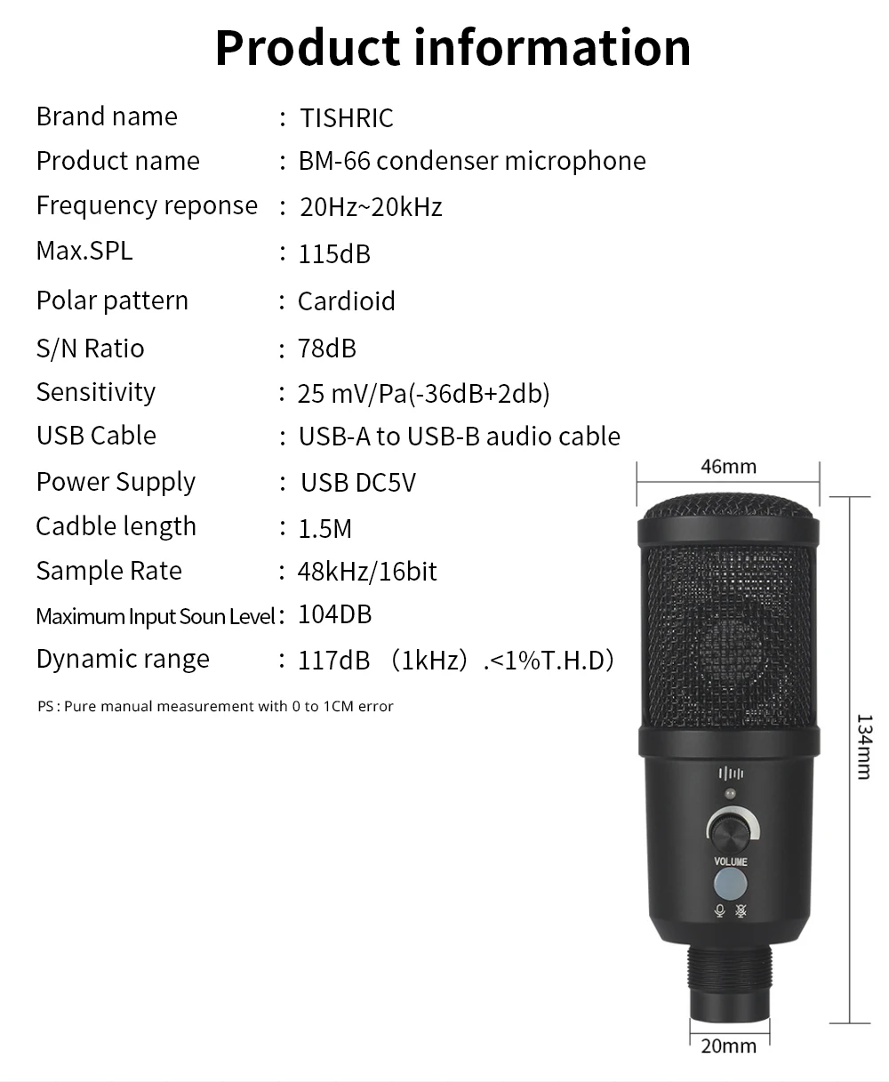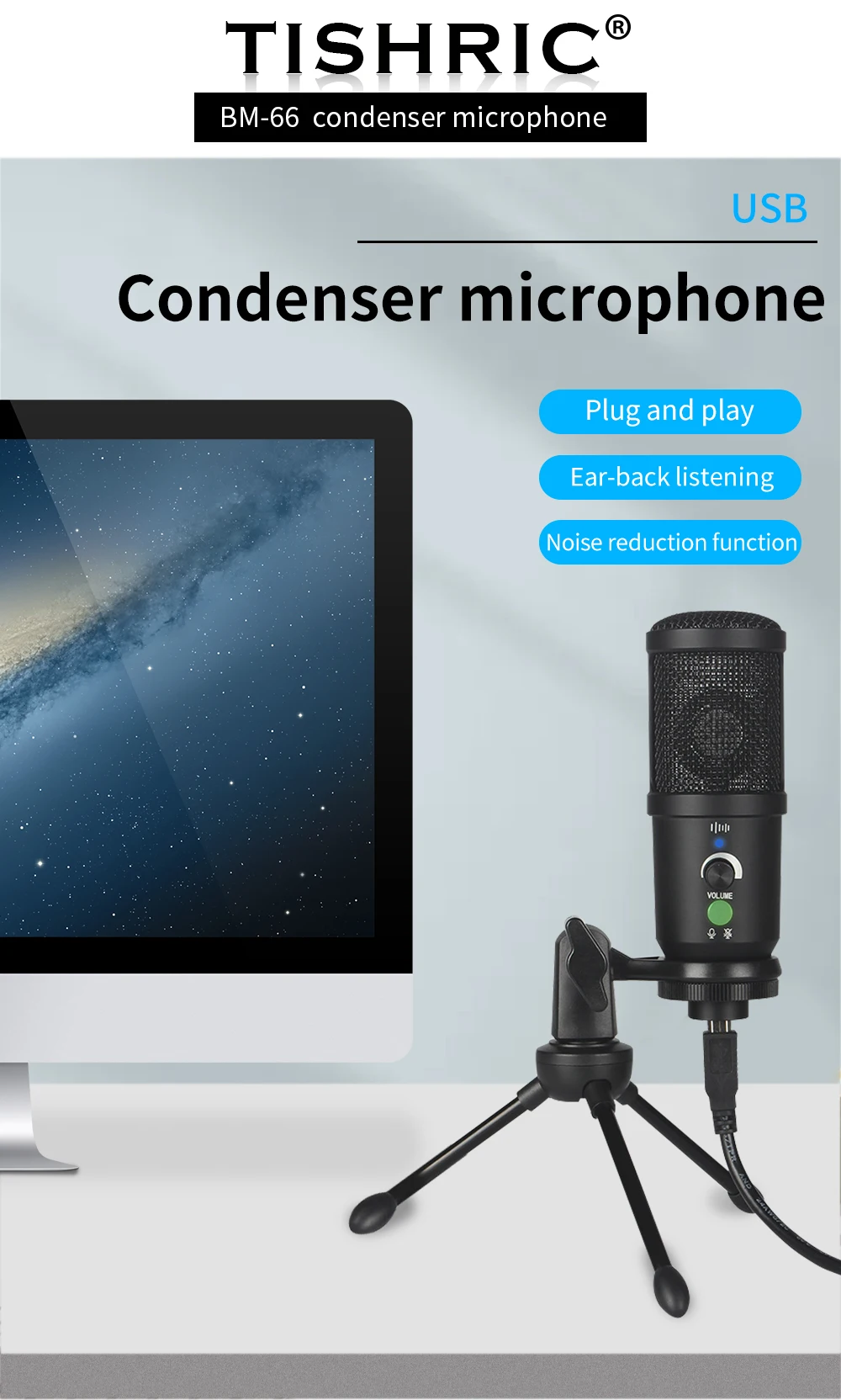 Comprar TISHRIC-micrófono de condensador USB profesional para PC, soporte de micrófono para juegos de ordenador, grabación de Karaoke, canto, BM-66