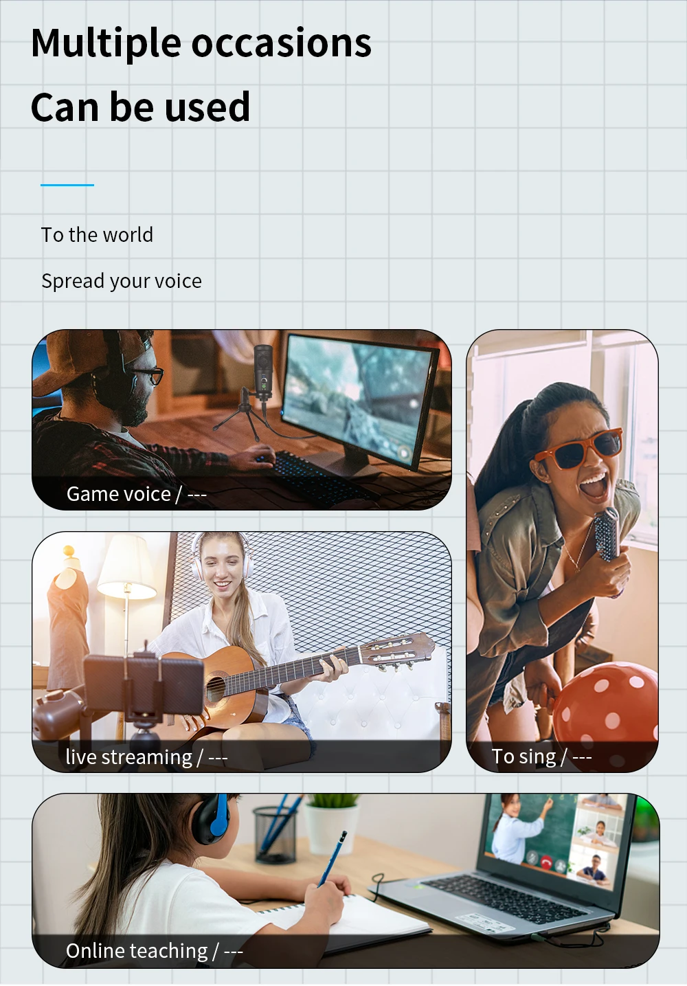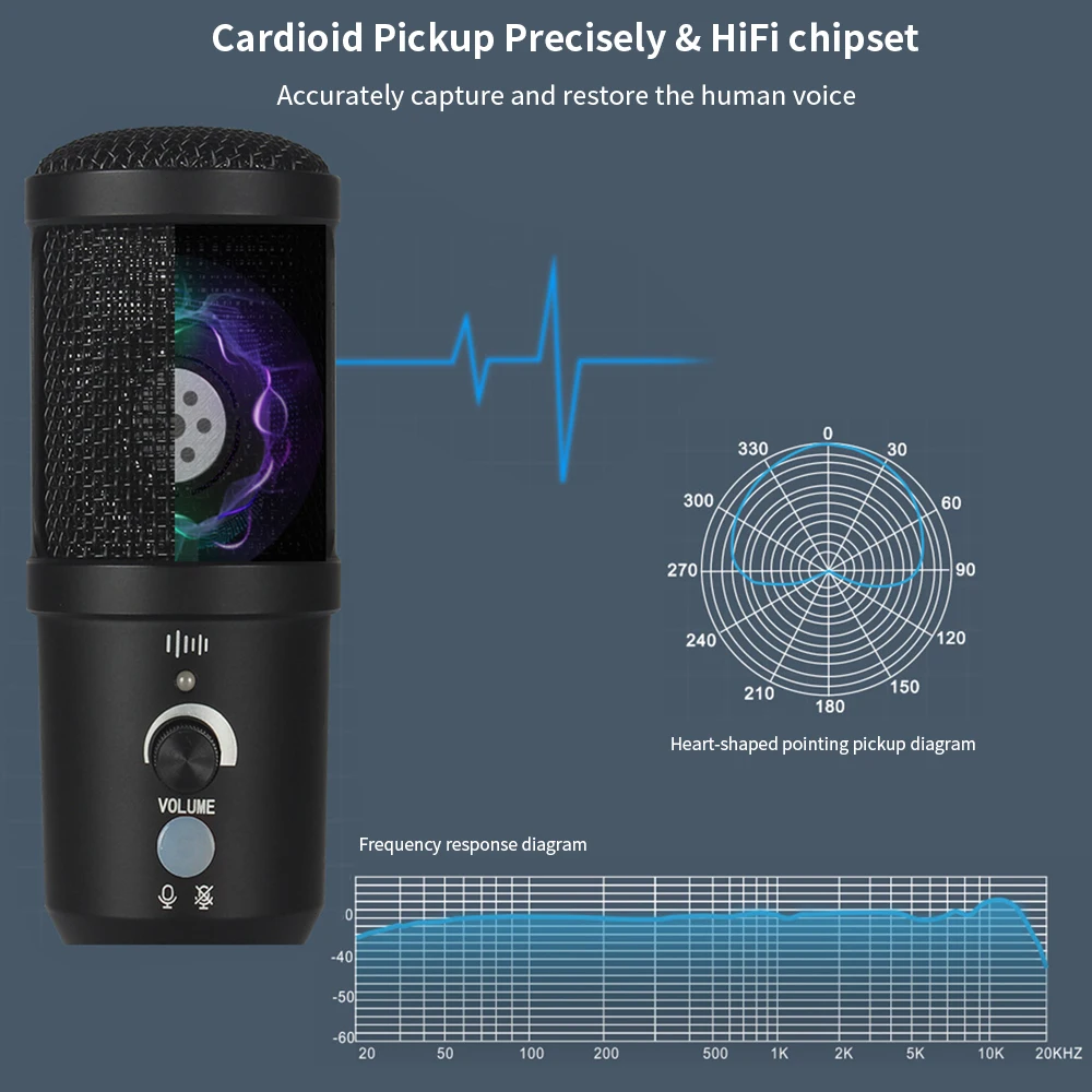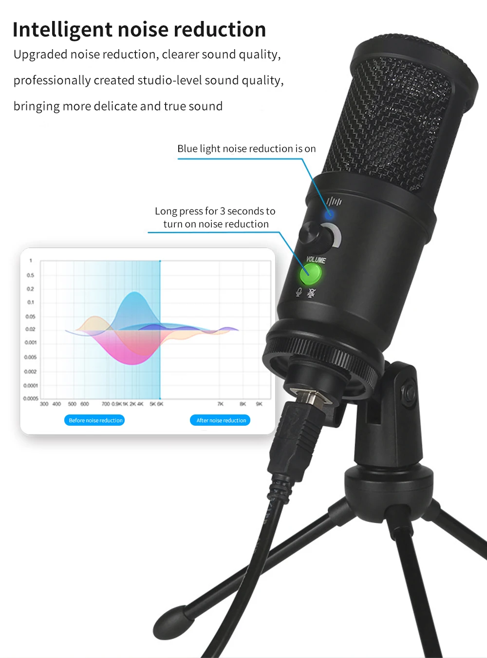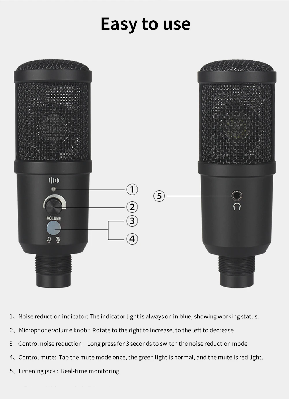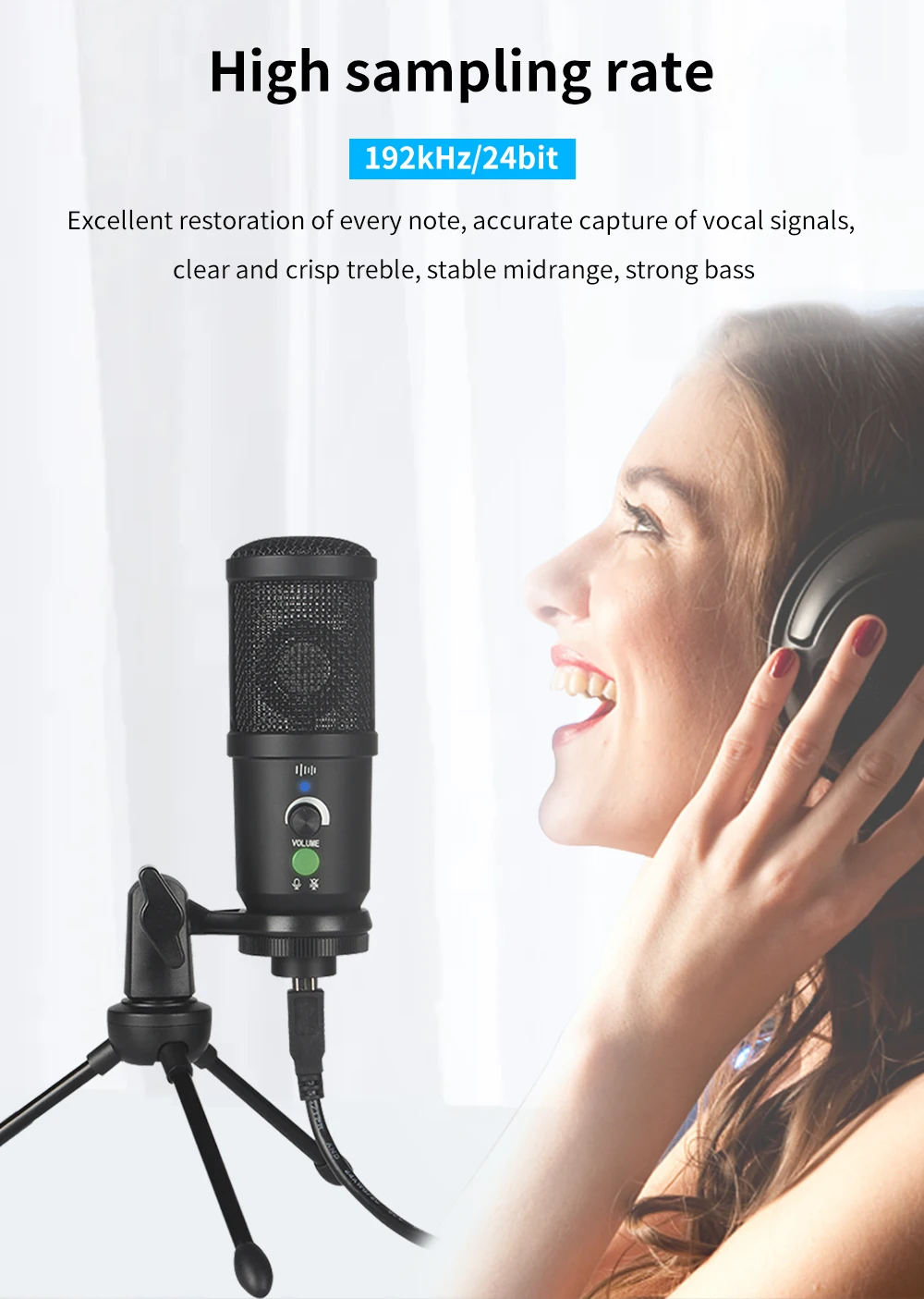Comprar TISHRIC-micrófono de condensador USB profesional para PC, soporte de micrófono para juegos de ordenador, grabación de Karaoke, canto, BM-66