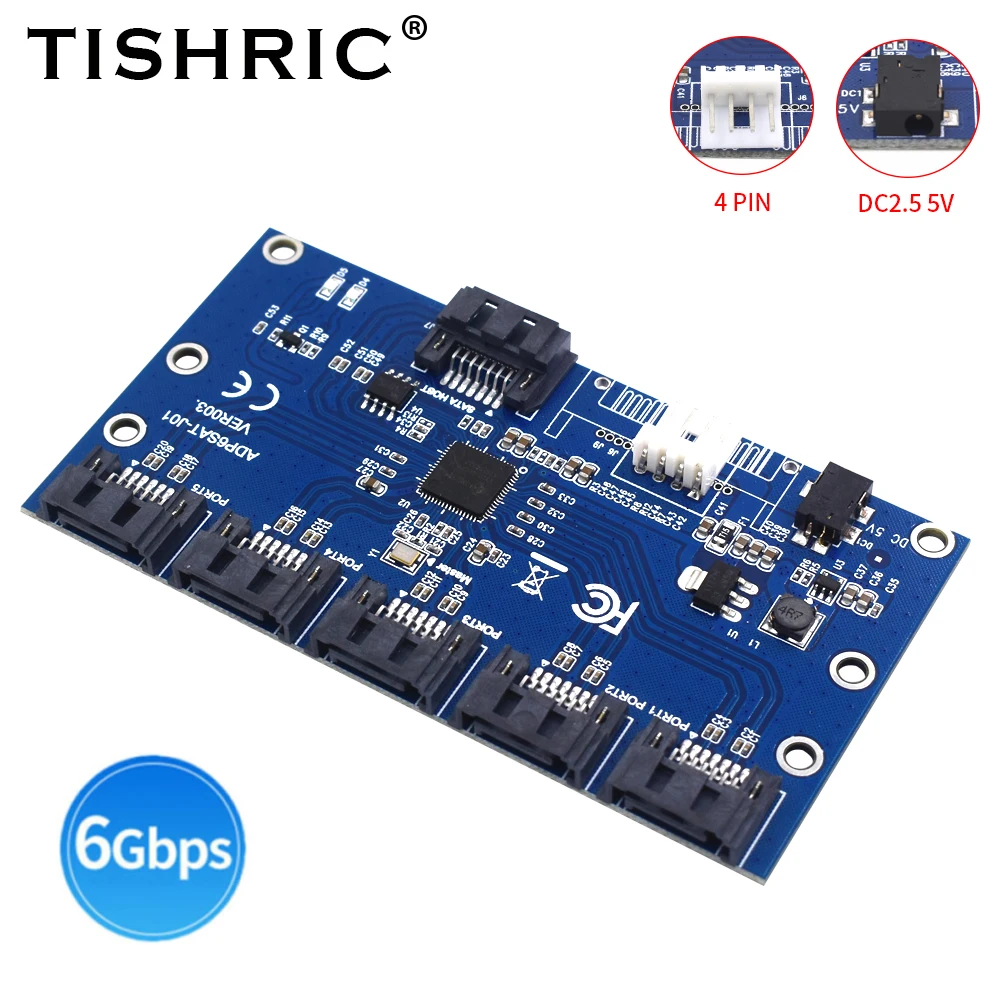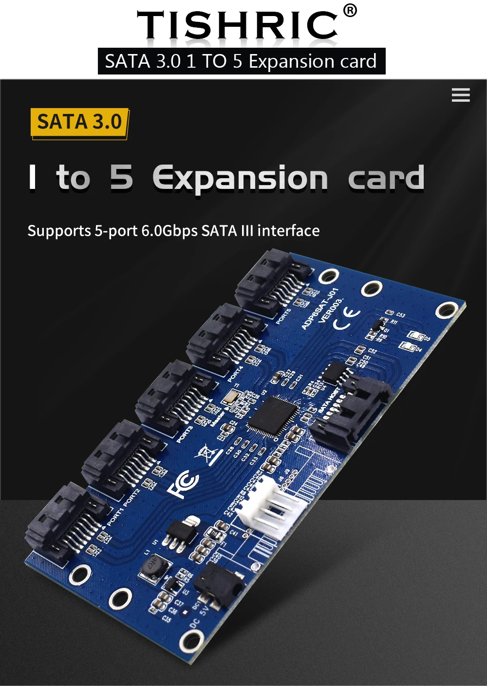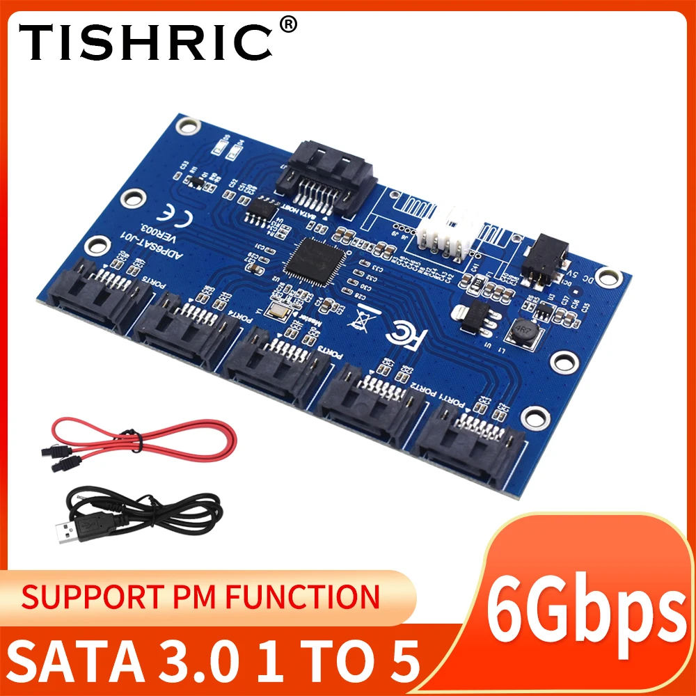 Comprar TISHRIC-multiplicador elevador SATA de 1 a 5 puertos, convertidor de tarjeta de expansión SATA 3,0, 6Gbps, disco duro HDD SSD, accesorio