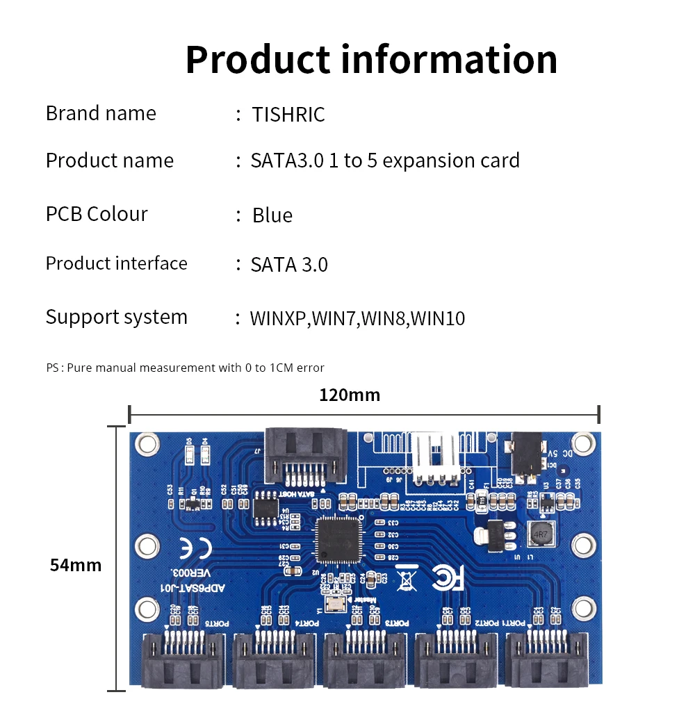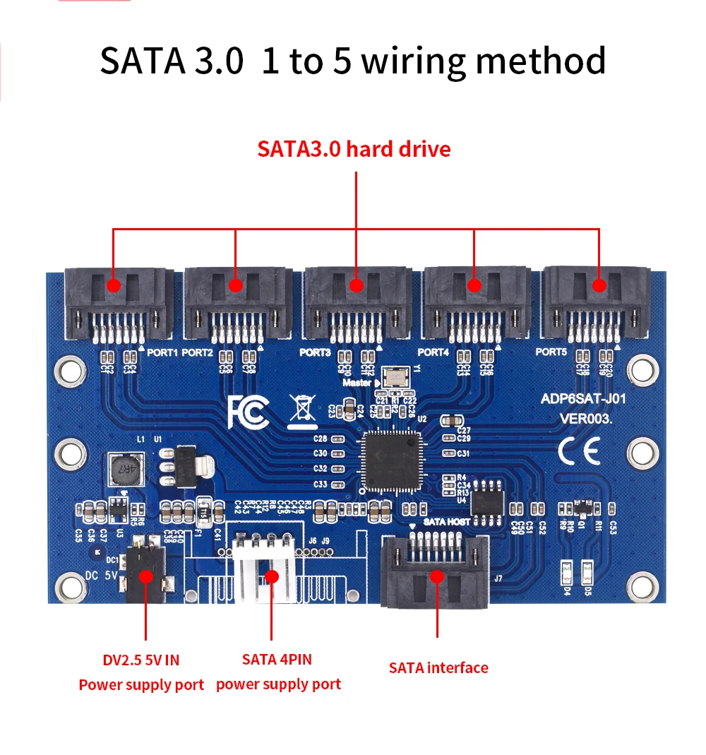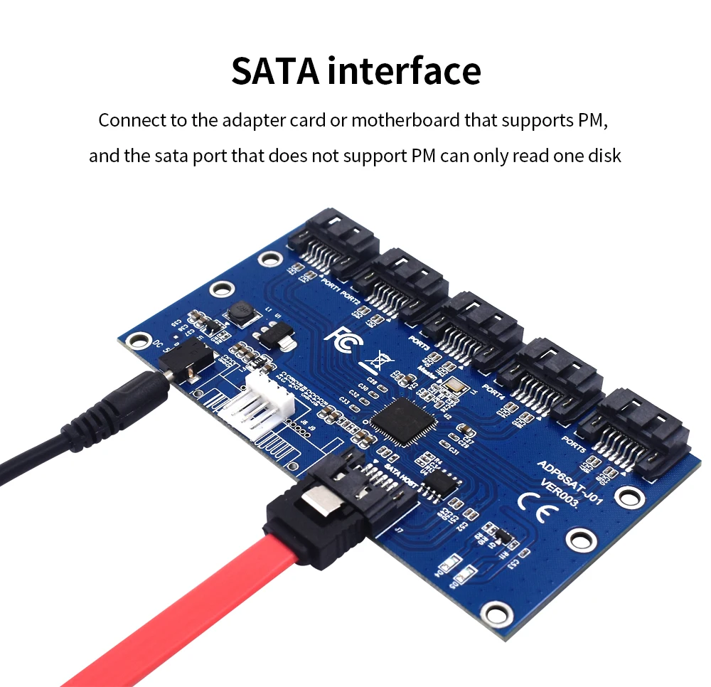 Comprar TISHRIC-multiplicador elevador SATA de 1 a 5 puertos, convertidor de tarjeta de expansión SATA 3,0, 6Gbps, disco duro HDD SSD, accesorio