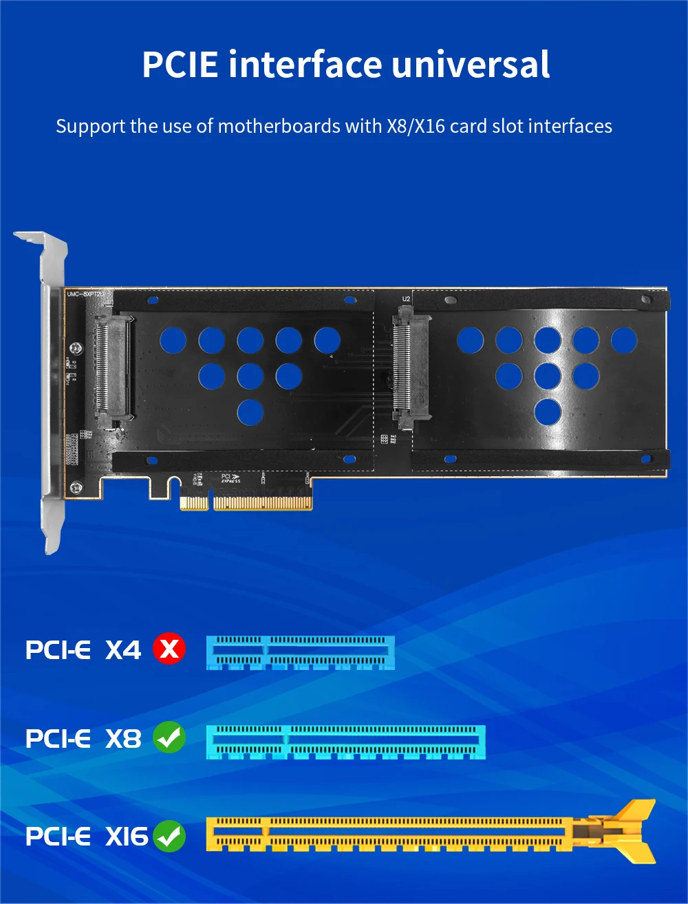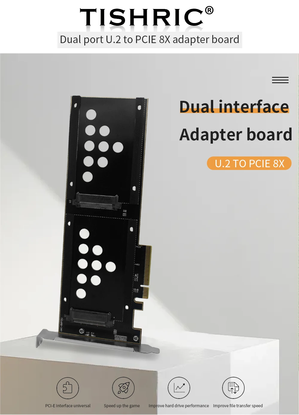 La placa adaptadora TISHRIC de doble puerto U.2 a PCIE 8X solo es compatible con la tarjeta vertical U.2 SSD aplicable al adaptador de interfaz de ranura para tarjeta PCI-E X8 X16