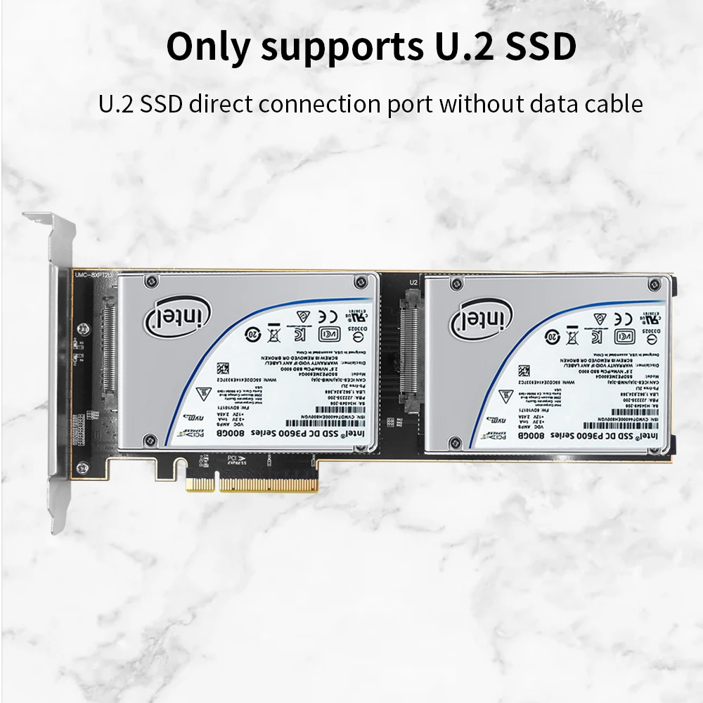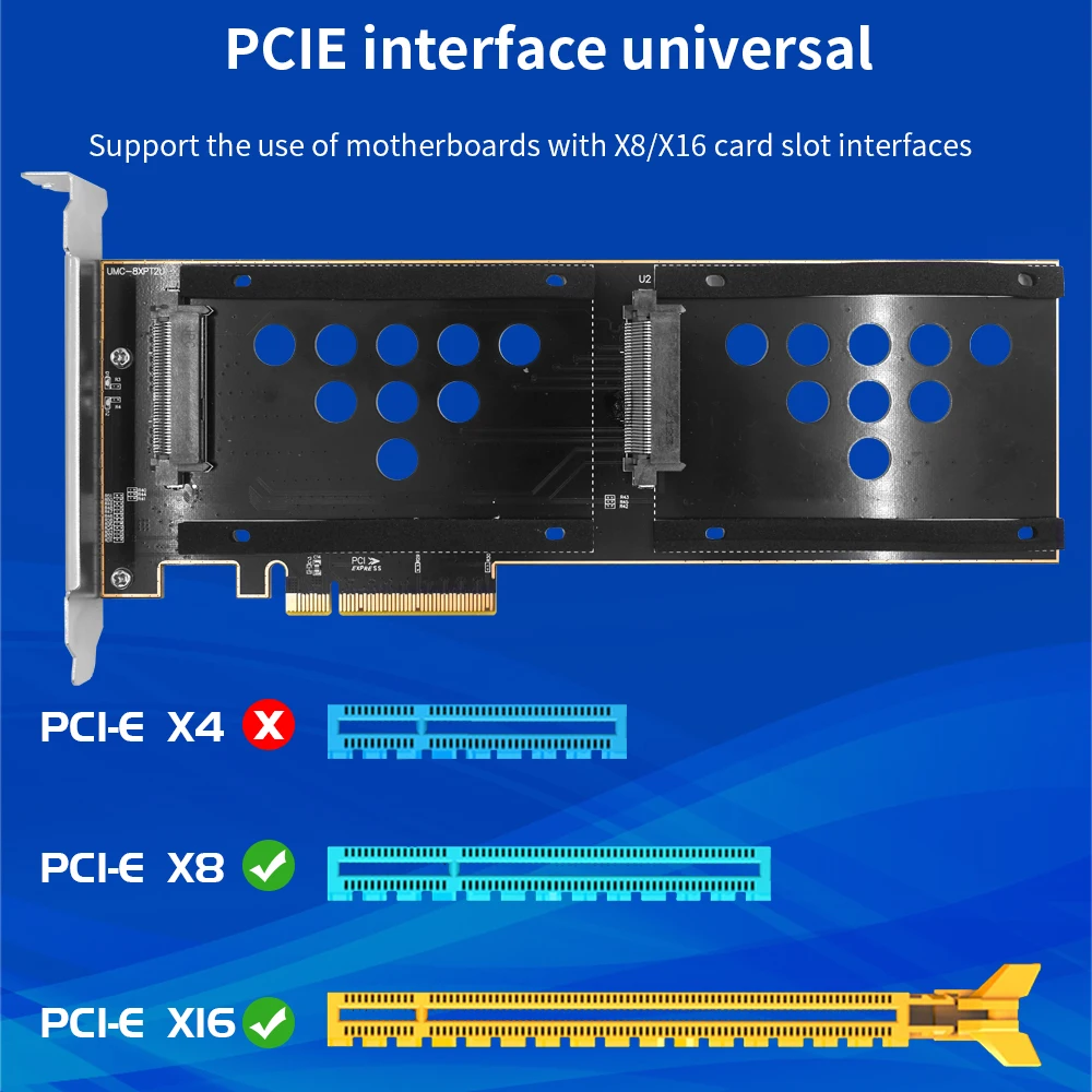 La placa adaptadora TISHRIC de doble puerto U.2 a PCIE 8X solo es compatible con la tarjeta vertical U.2 SSD aplicable al adaptador de interfaz de ranura para tarjeta PCI-E X8 X16