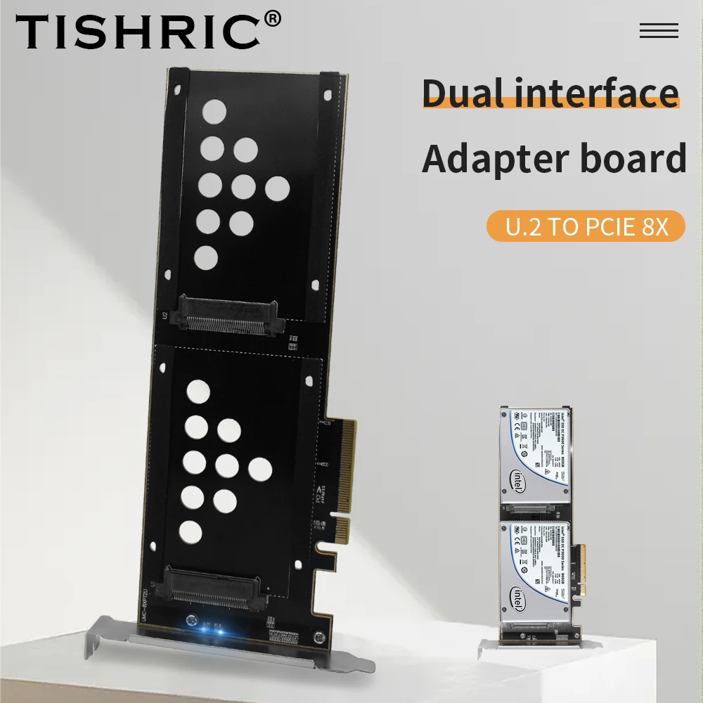 Comprar TISHRIC placa adaptadora de doble puerto U.2 a PCIE 8X, solo compatible con tarjeta elevadora U.2 SSD, aplicable al adaptador de interfaz de ranura para tarjeta PCI-E X8 X16