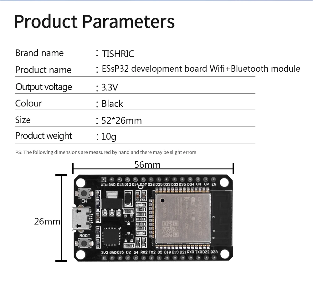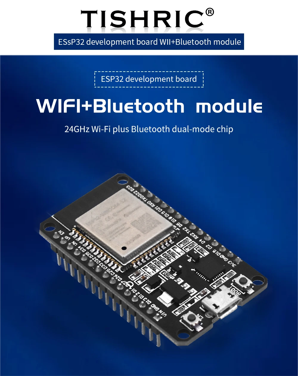 Comprar TISHRIC-Placa de desarrollo ESP32, módulo WIFl + Bluetooth, interfaz Micro USB, 24GHz, Wi-Fi, ESP-32S, CP2102, filtros, módulo de ESP-WROOM32