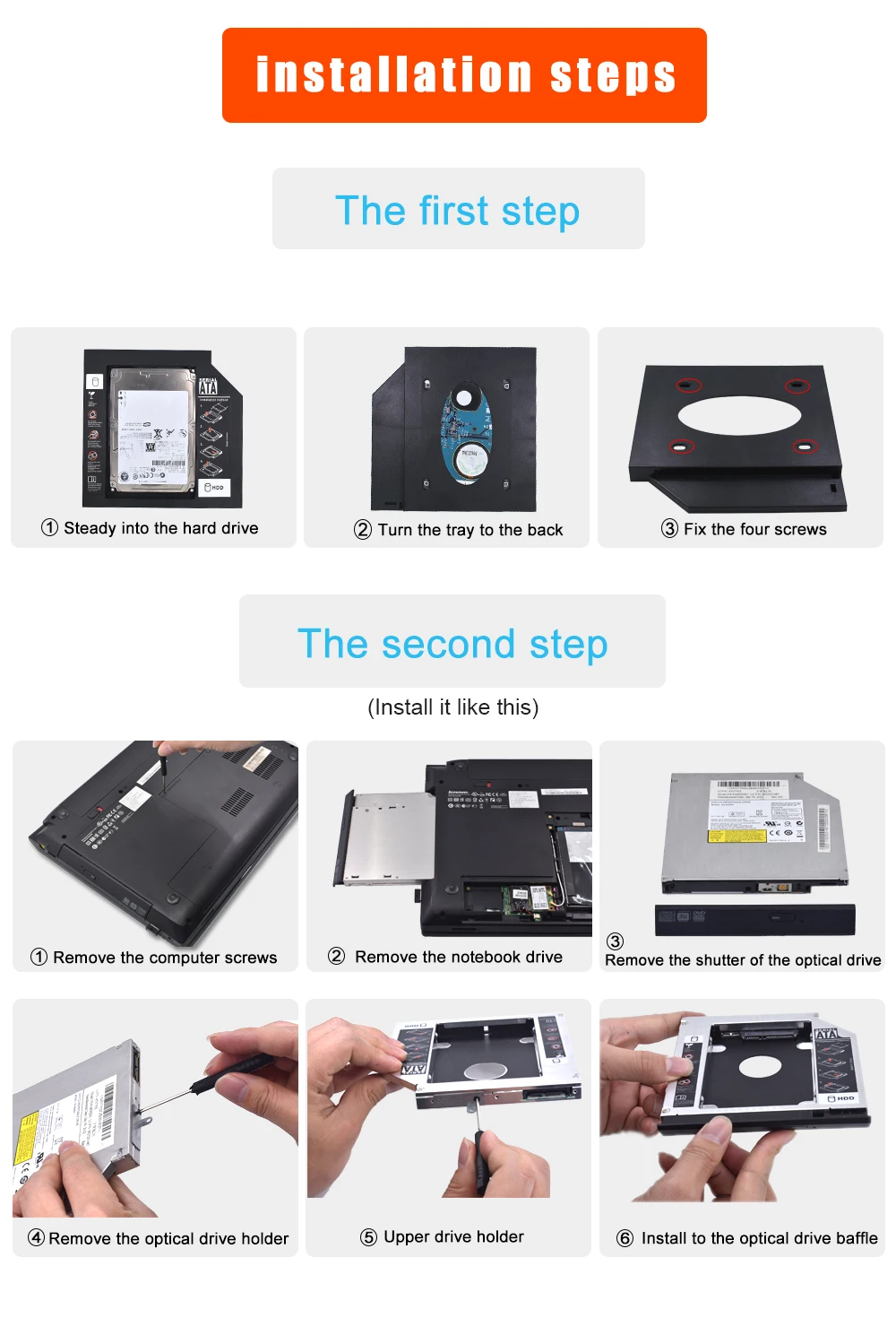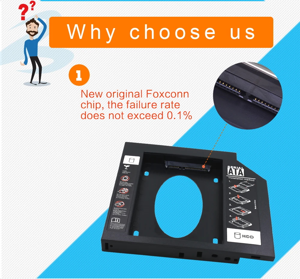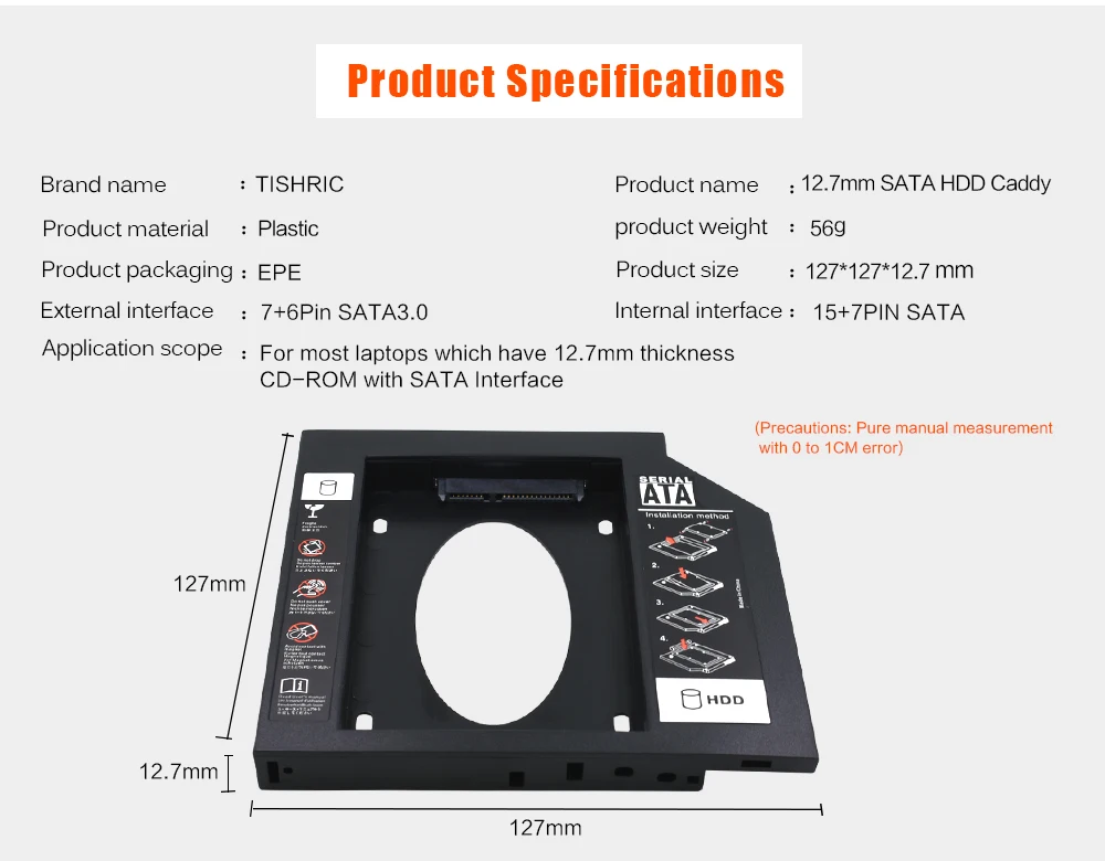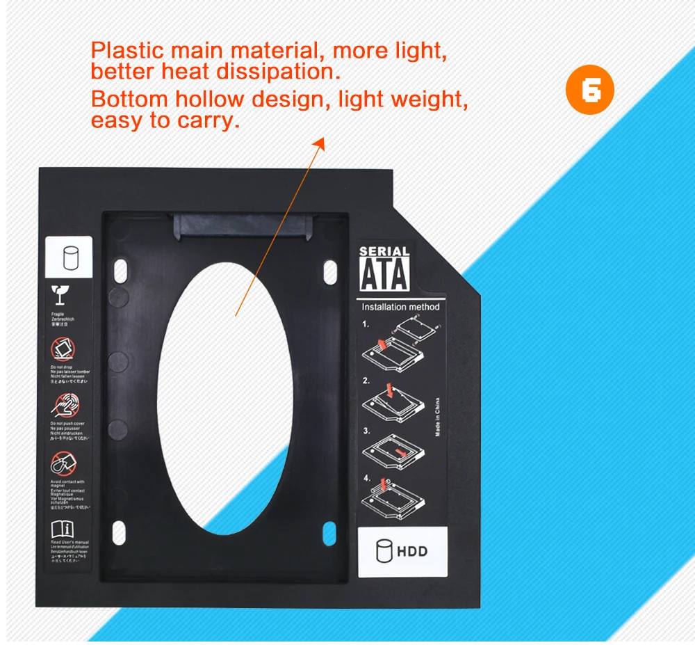 TISHRIC nuevo plástico 2 segundo HDD Caddy 12.7mm SATA 3.0 Optibay 2,5 '' SSD DVD disco duro controlador CD-ROM adaptador caso
