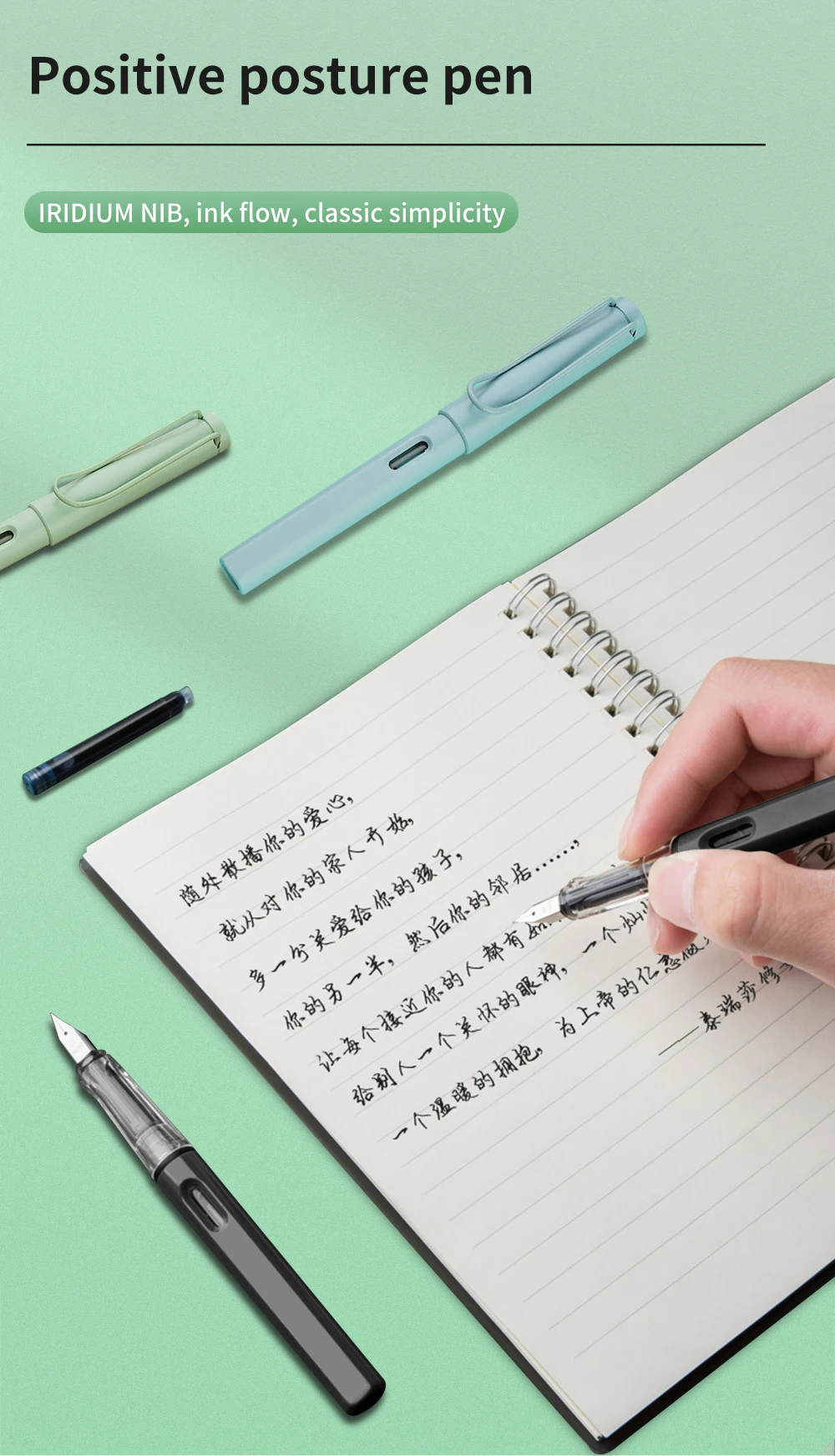 TISHRIC-Pluma estilográfica clásica de 0,38mm, bolígrafo estándar de oficina, bolígrafos escolares de doble uso, material de oficina, papelería, 3 bolígrafos + 50 tintas