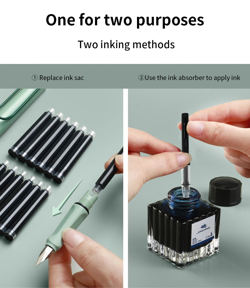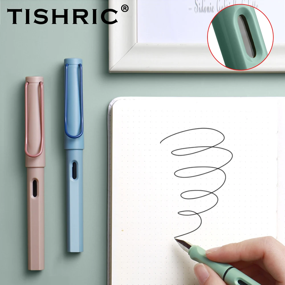 Comprar TISHRIC-pluma estilográfica de doble uso para oficina, pluma clásica estándar de 0,38mm, material escolar y de papelería, 3 bolígrafos + 50 tintas