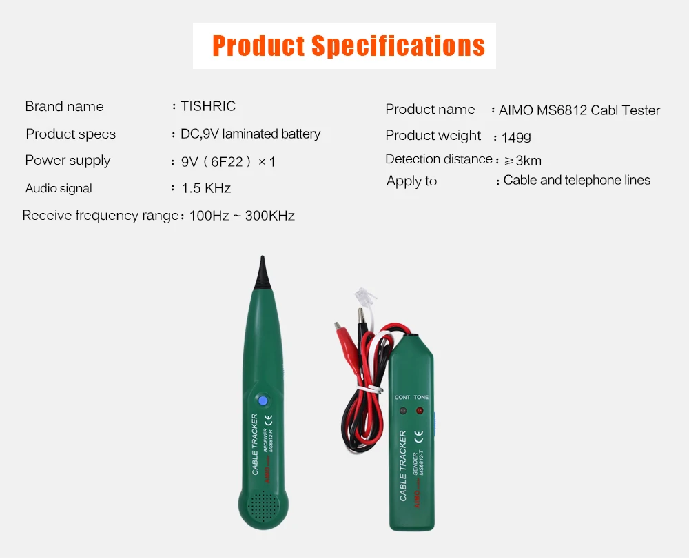 Comprar TISHRIC-rastreador de cables MS6812, probador de cables de red con generador de tono, buscador de cables, distancia de detección de 3km, herramientas Lan