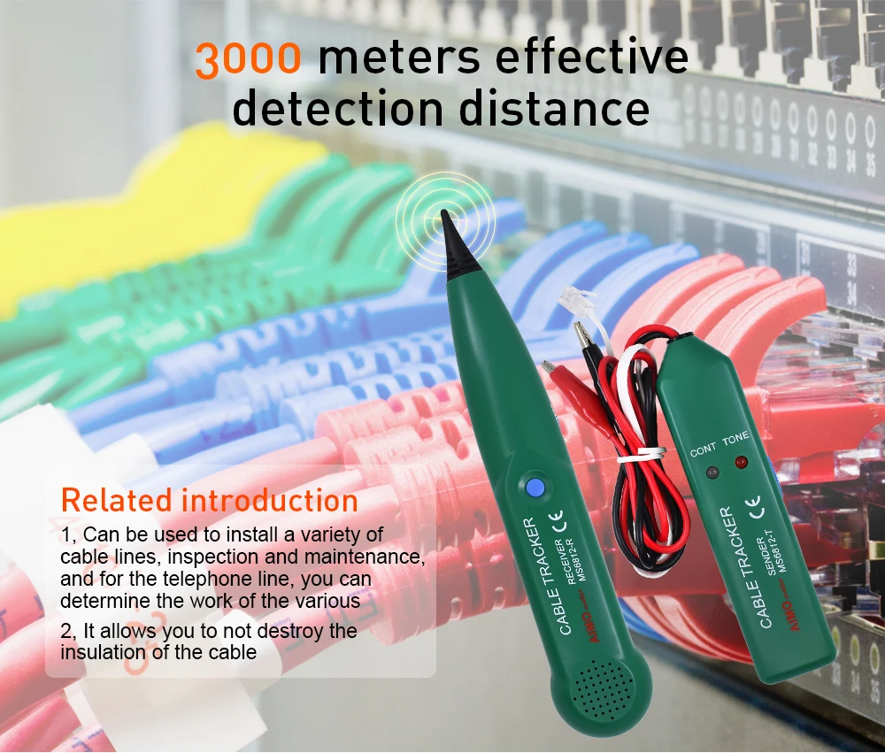 Probador de cables de red tishnic MS6812 con detector de cables y generador de tonos, buscador de cables, 3km de detección de distancia, herramientas Lan.