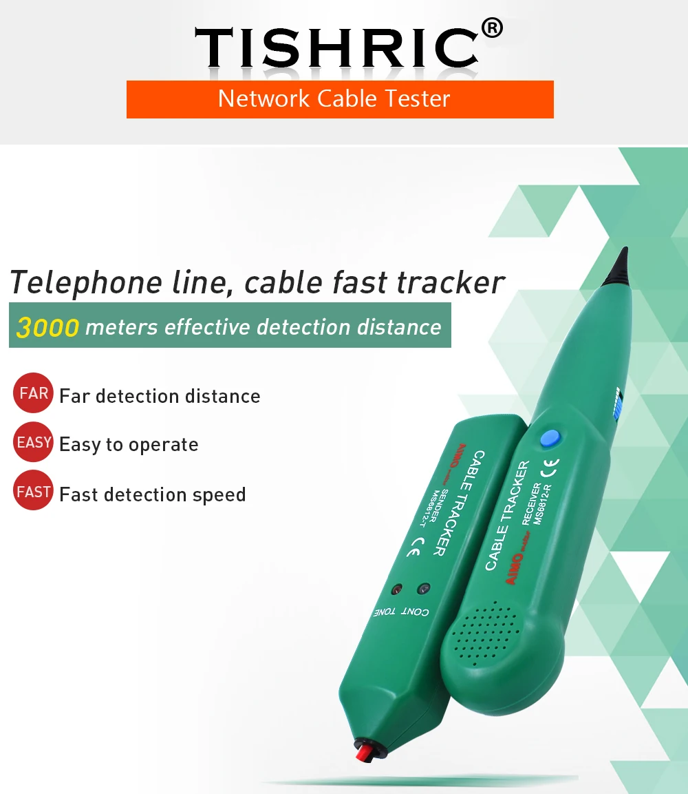 TISHRIC-rastreador de cables MS6812, probador de cables de red con generador de tono, buscador de cables, distancia de detección de 3km, herramientas Lan