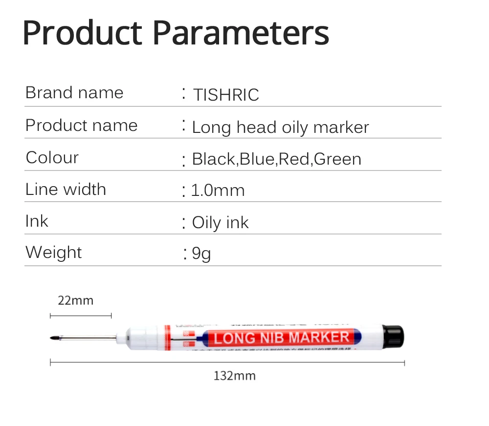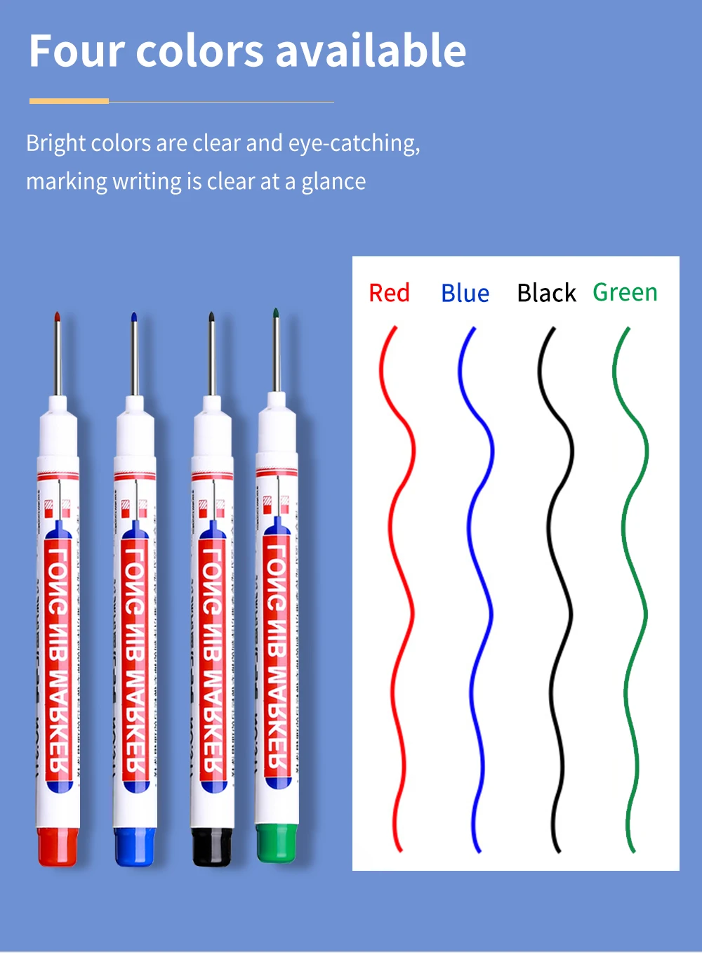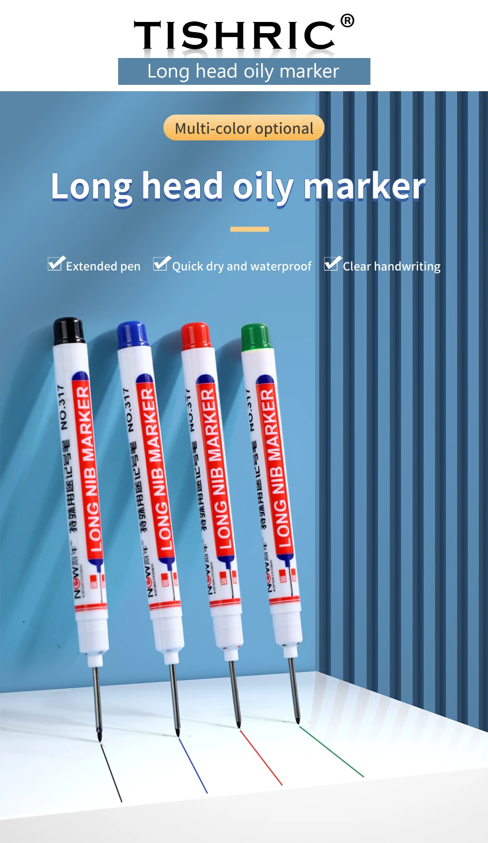 Comprar TISHRIC-rotuladores aceitosos de cabeza larga, decoración de carpintería para baño, rotuladores multiusos de agujero profundo, verde/Rojo/negro/azul