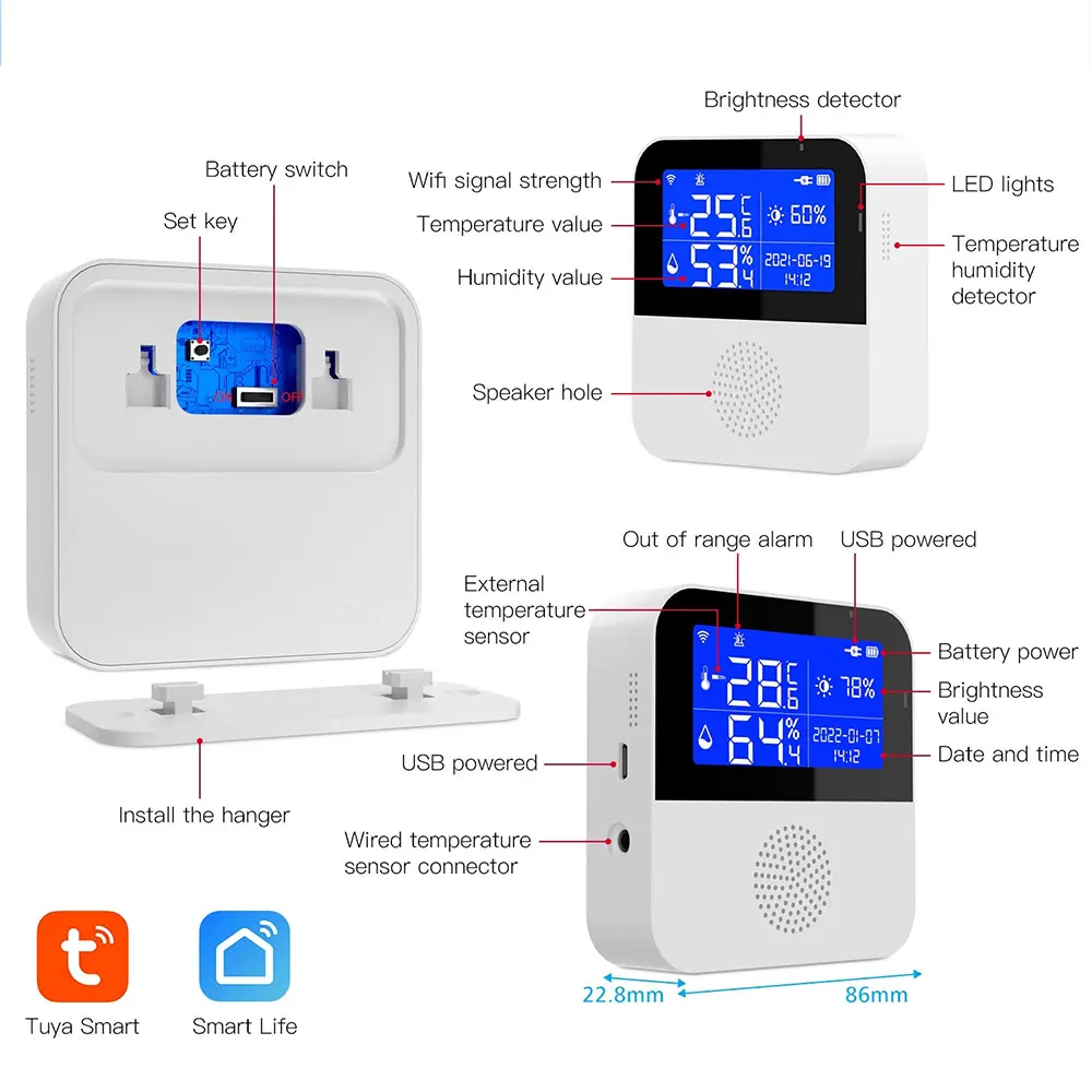 Comprar TISHRIC-Sensor de temperatura y humedad para el hogar, dispositivo de seguridad con Wifi, aplicación remota, Smart Life, compatible con Alexa y Google Home, Tuya