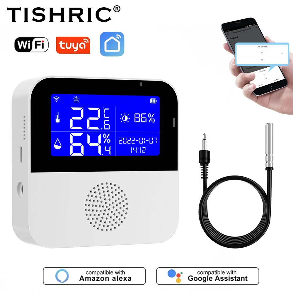TISHRIC Tuya Wifi temperatura humedad Sensor aplicación remota seguridad hogar Interior Exterior vida inteligente con Alexa Google Home WiFi trabajo