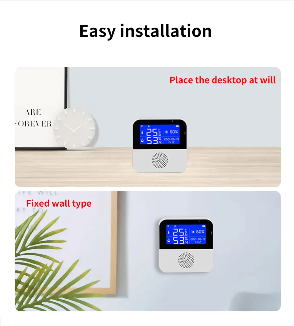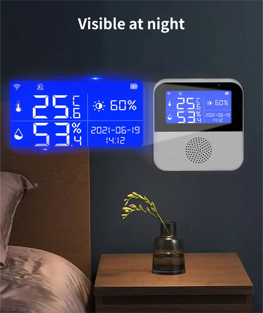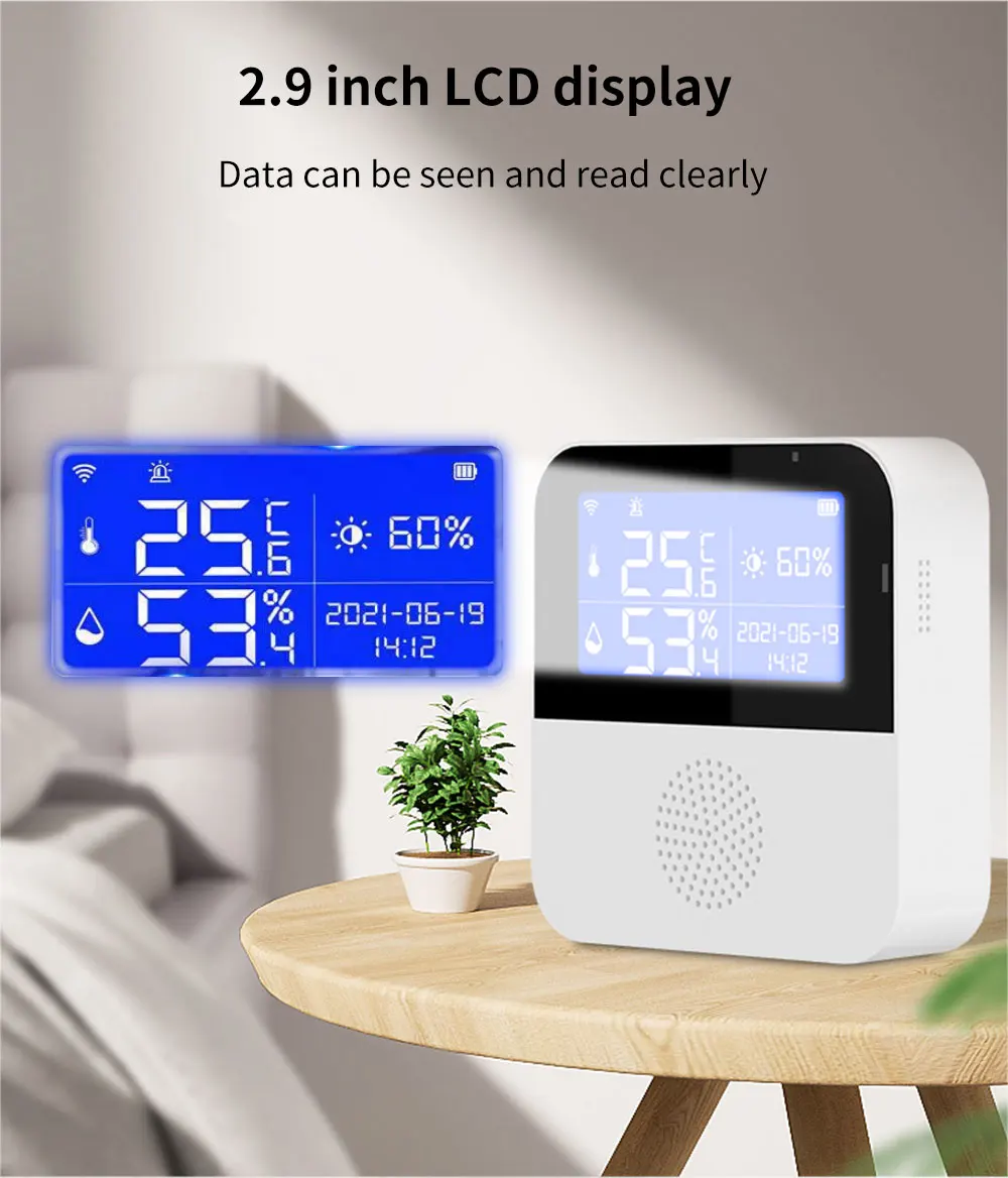 Comprar TISHRIC-Sensor de temperatura y humedad para el hogar, dispositivo de seguridad con Wifi, aplicación remota, Smart Life, compatible con Alexa y Google Home, Tuya