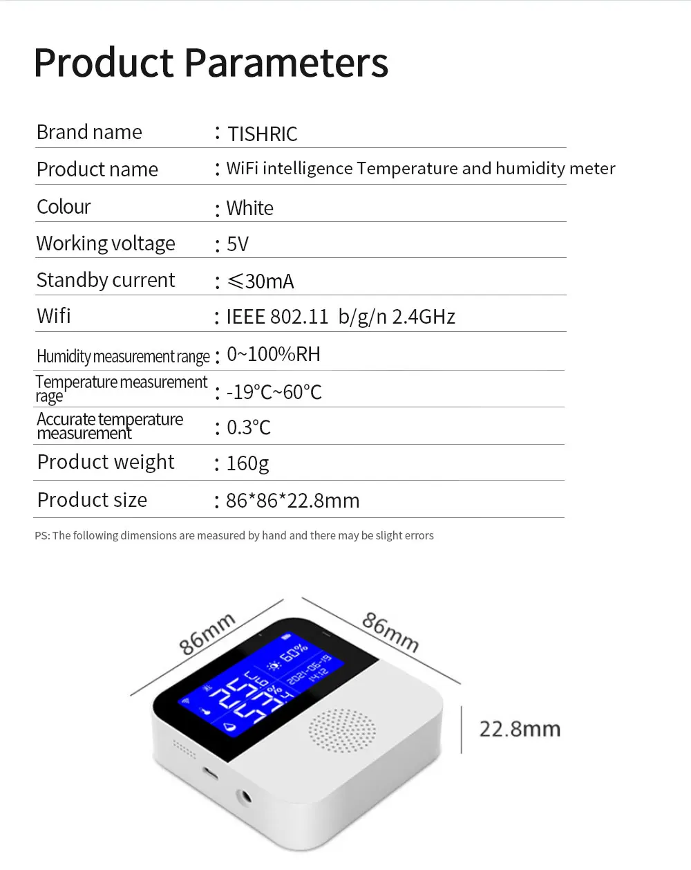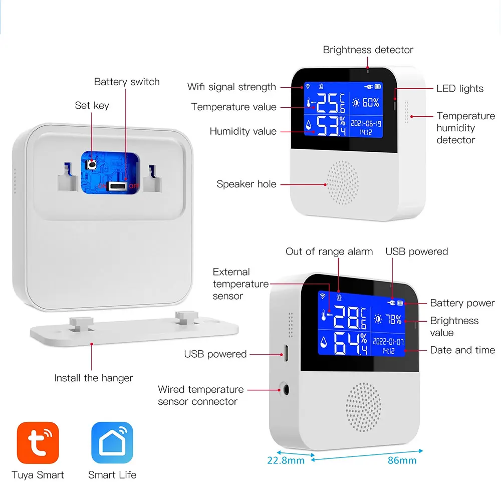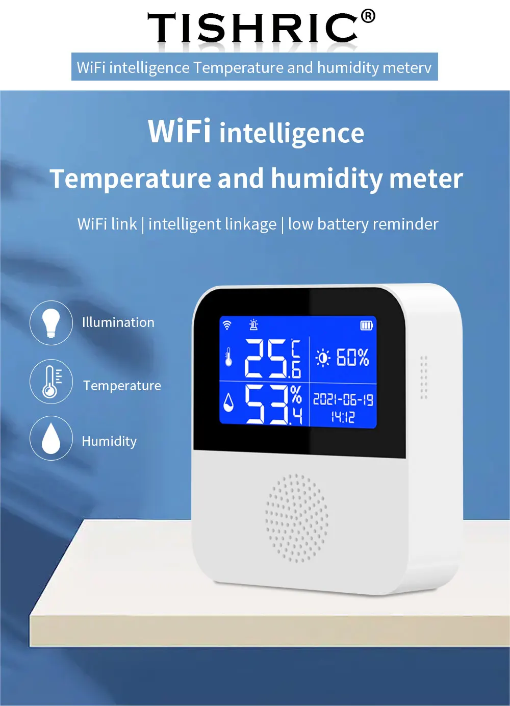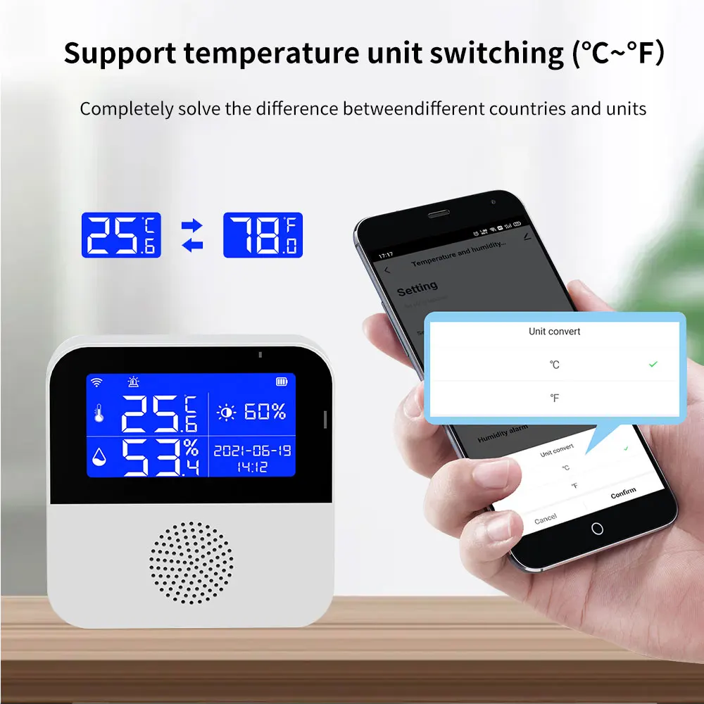 Comprar TISHRIC-Sensor de temperatura y humedad para el hogar, dispositivo de seguridad con Wifi, aplicación remota, Smart Life, compatible con Alexa y Google Home, Tuya