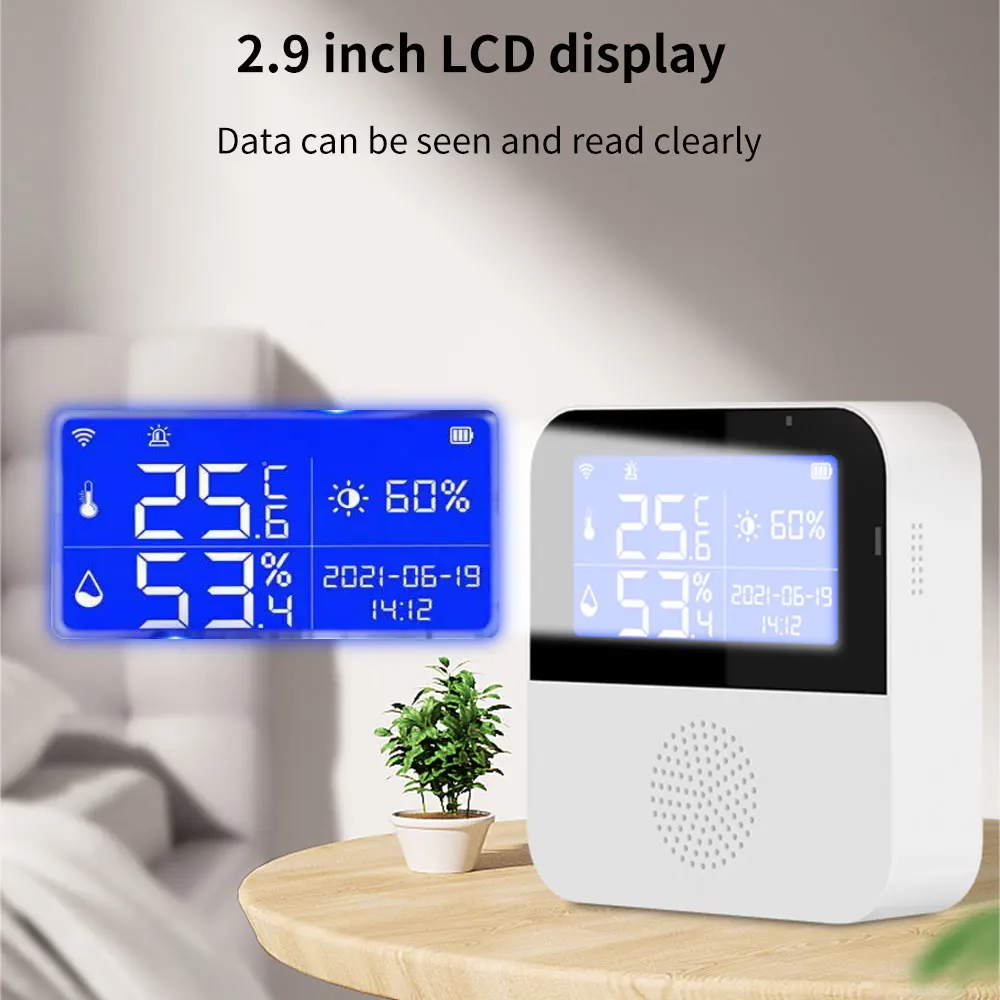 Comprar TISHRIC-Sensor de temperatura y humedad para el hogar, dispositivo de seguridad con Wifi, aplicación remota, Smart Life, compatible con Alexa y Google Home, Tuya