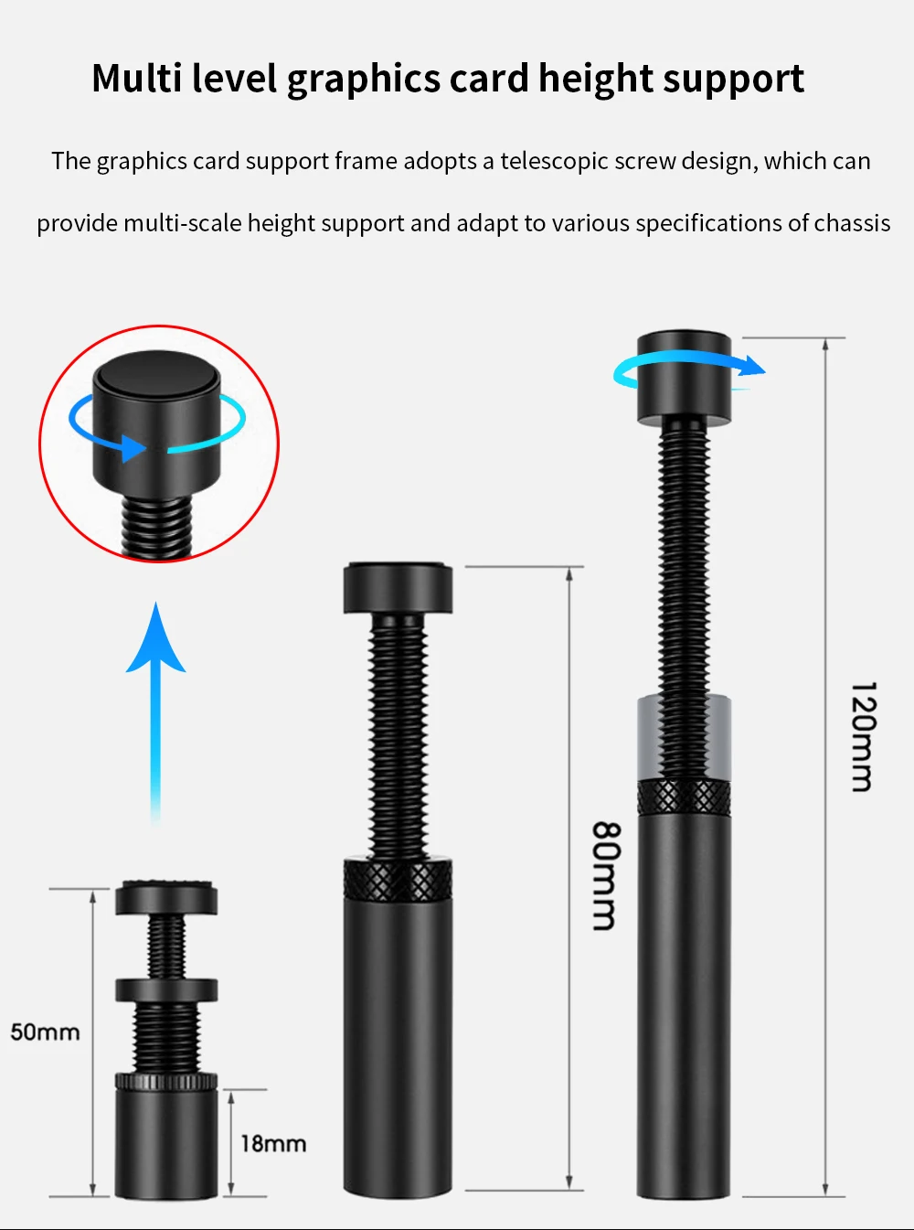 TISHRIC soporte para tarjeta gráfica GPU, funda para PC de escritorio, soporte ajustable, tornillo giratorio telescópico, soporte para tarjeta de Video, Sag, Jack