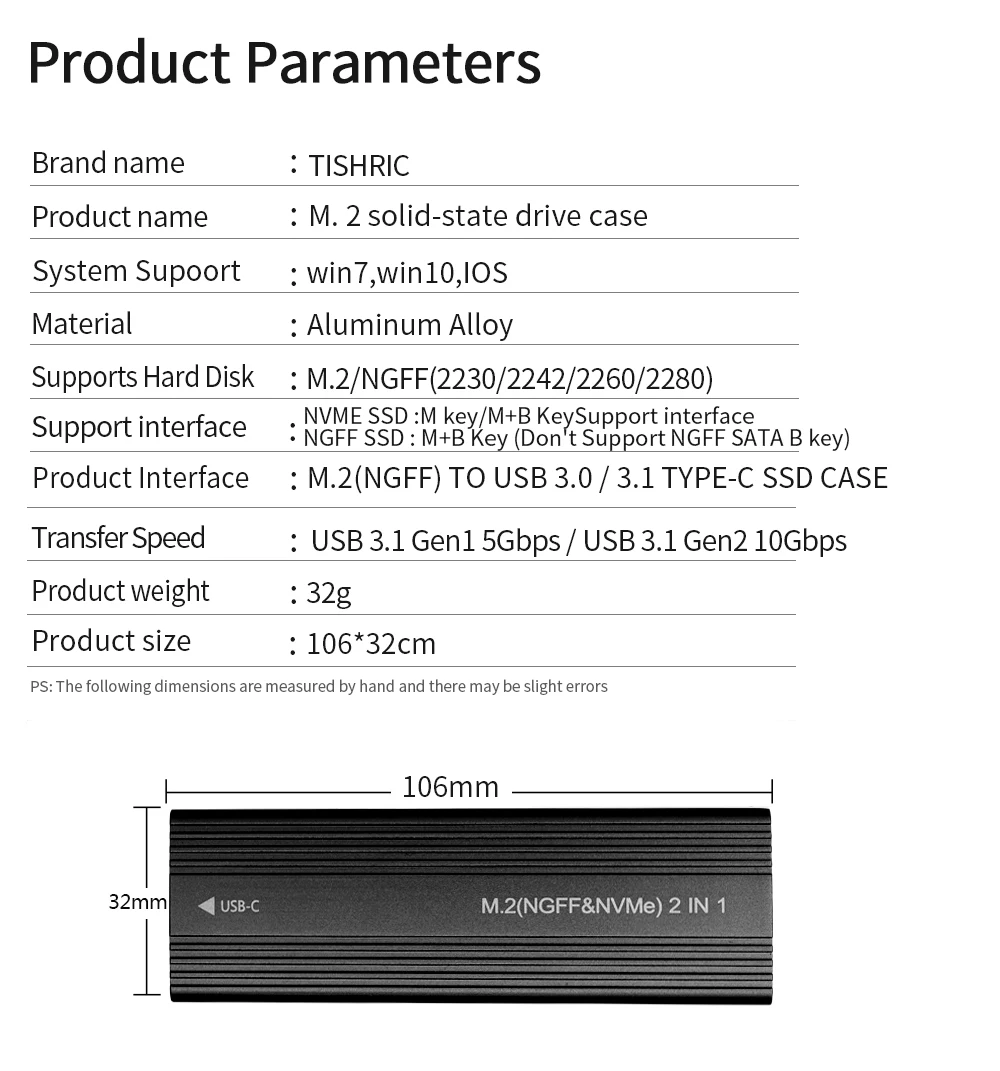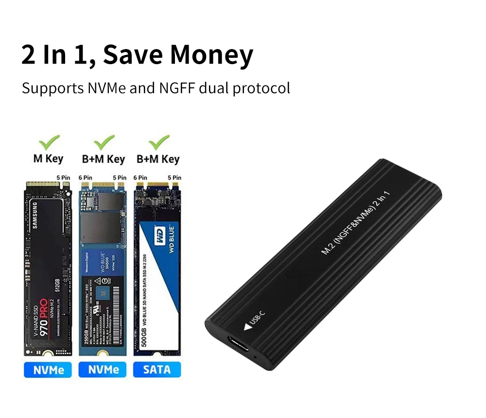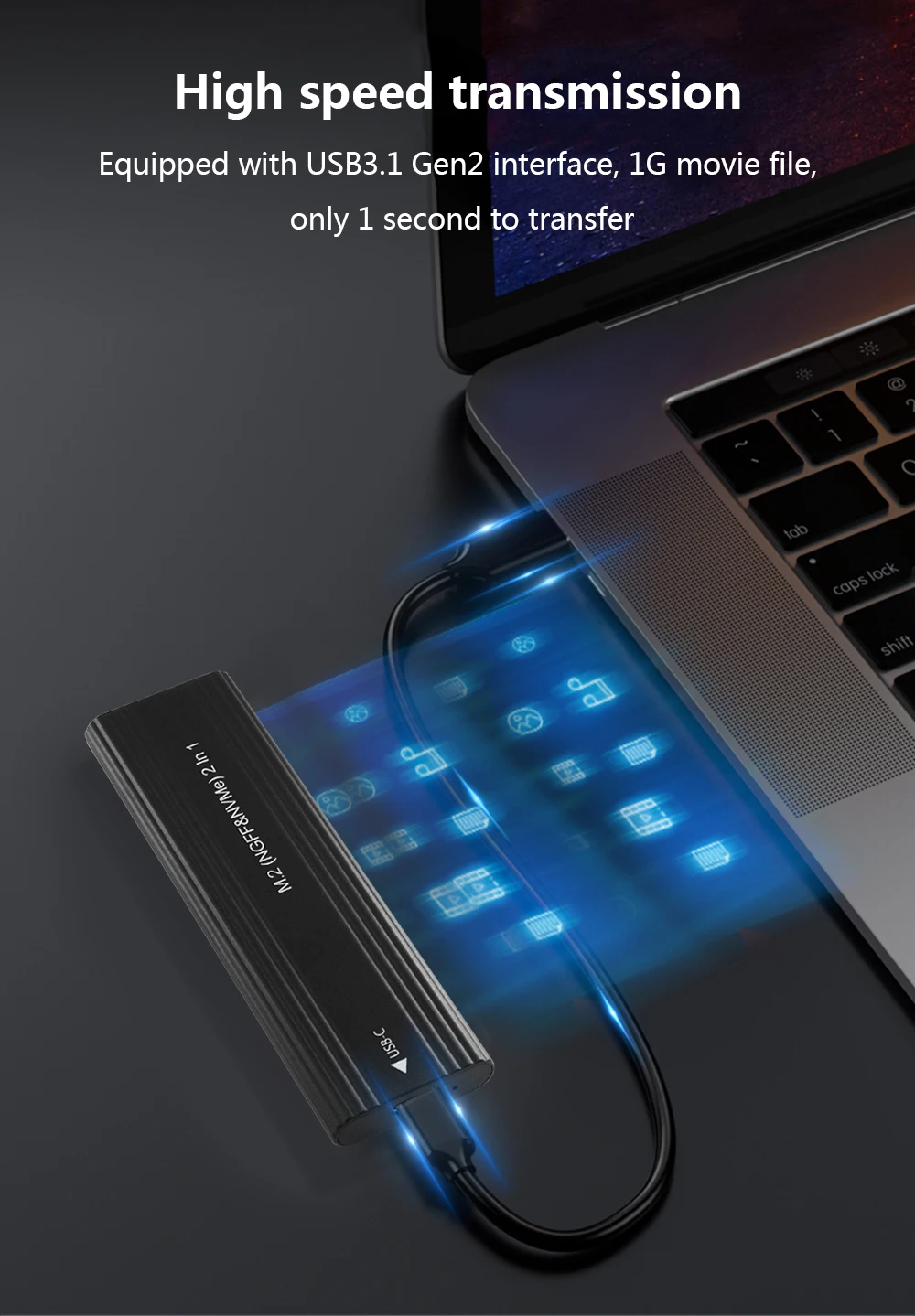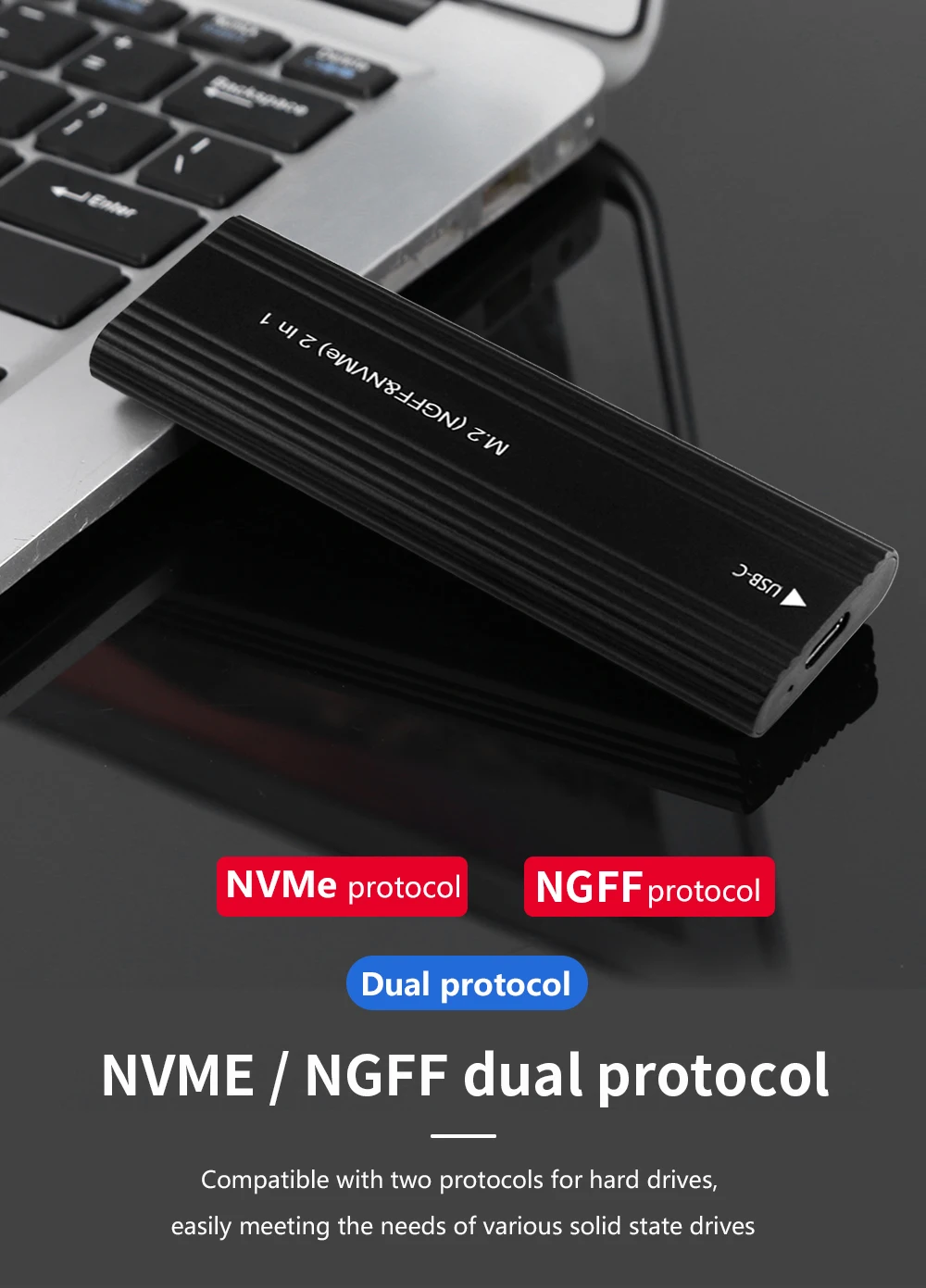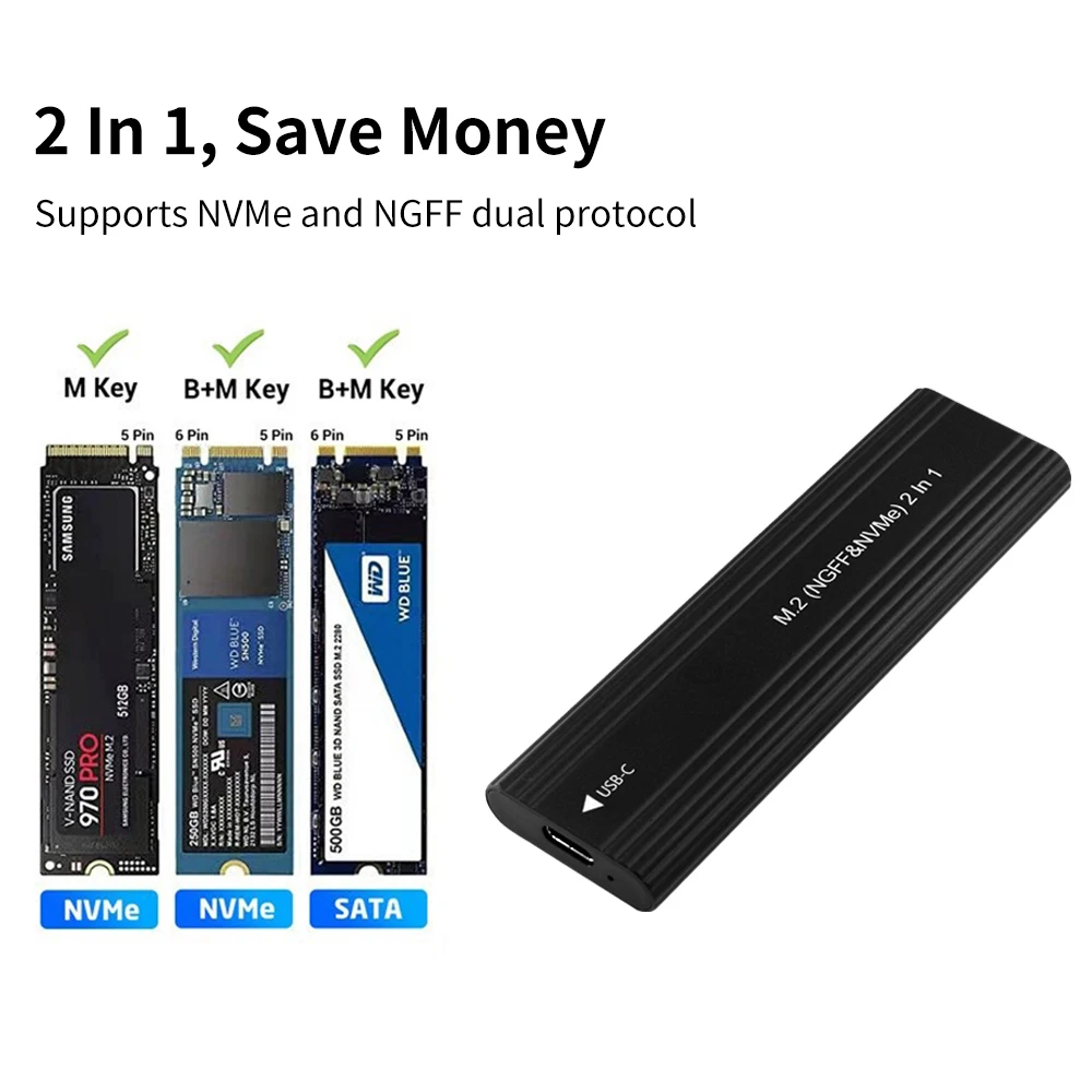 TISHRIC SSD NGFF NVME M.2 Caja de disco duro externo Protocolo simple/doble M/B + M Key NVME Sata M2 Caja de disco duro para juegos