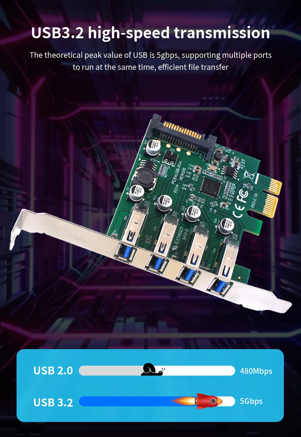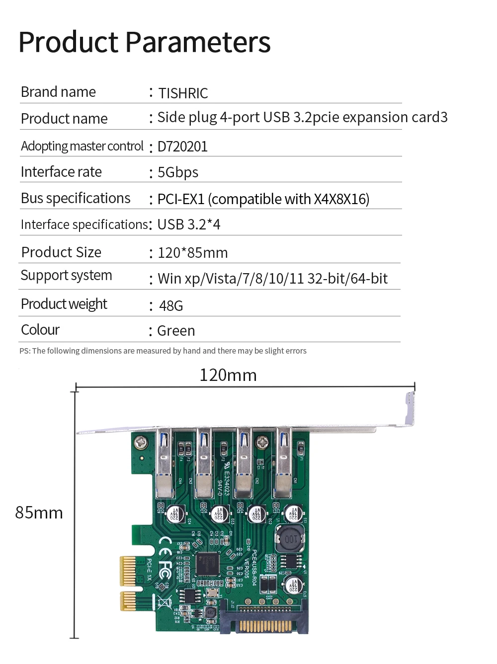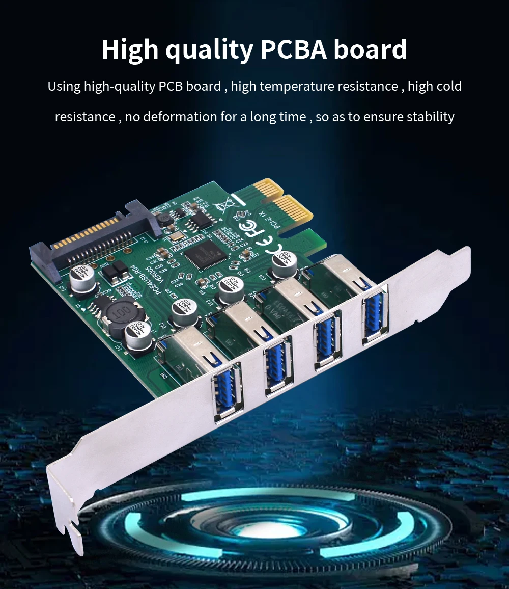 Tarjeta TISHRIC USB 3,2 PCI-E X1 a USB 5Gbps 4 puertos USB 3,2 tarjeta adaptadora D720201 convertidor PCI-E X16 controlador tarjeta adicional