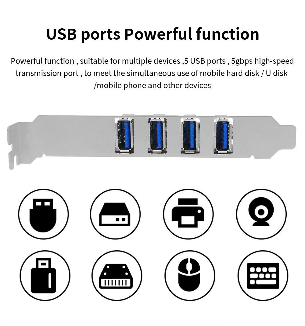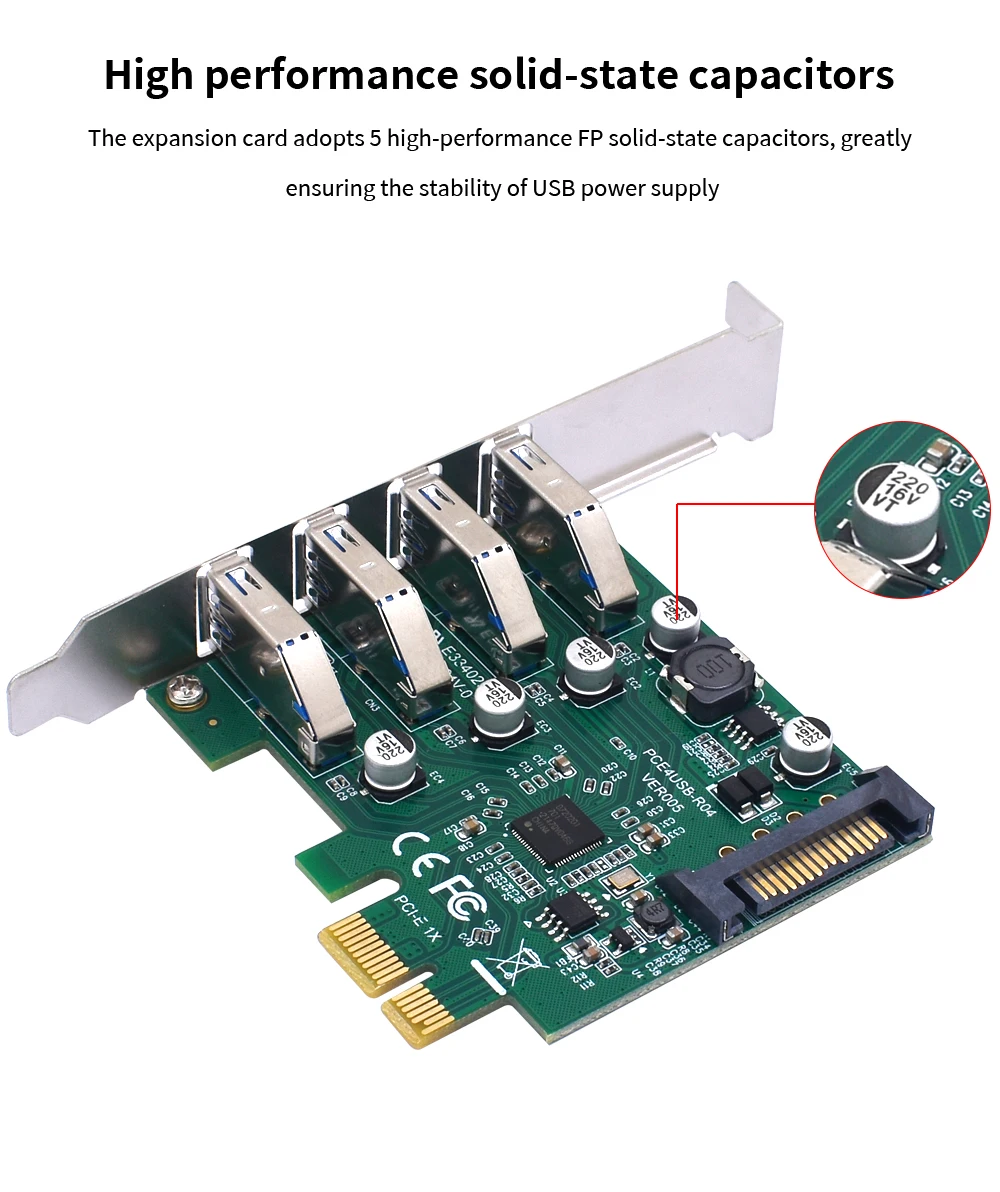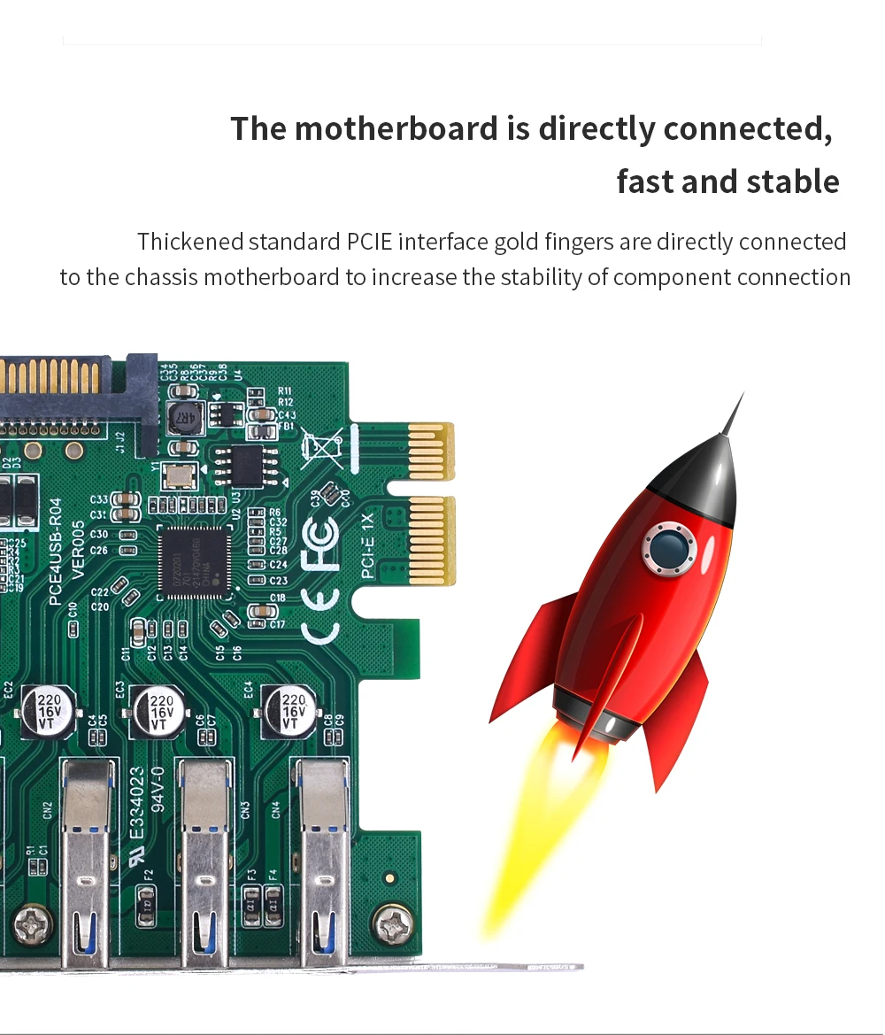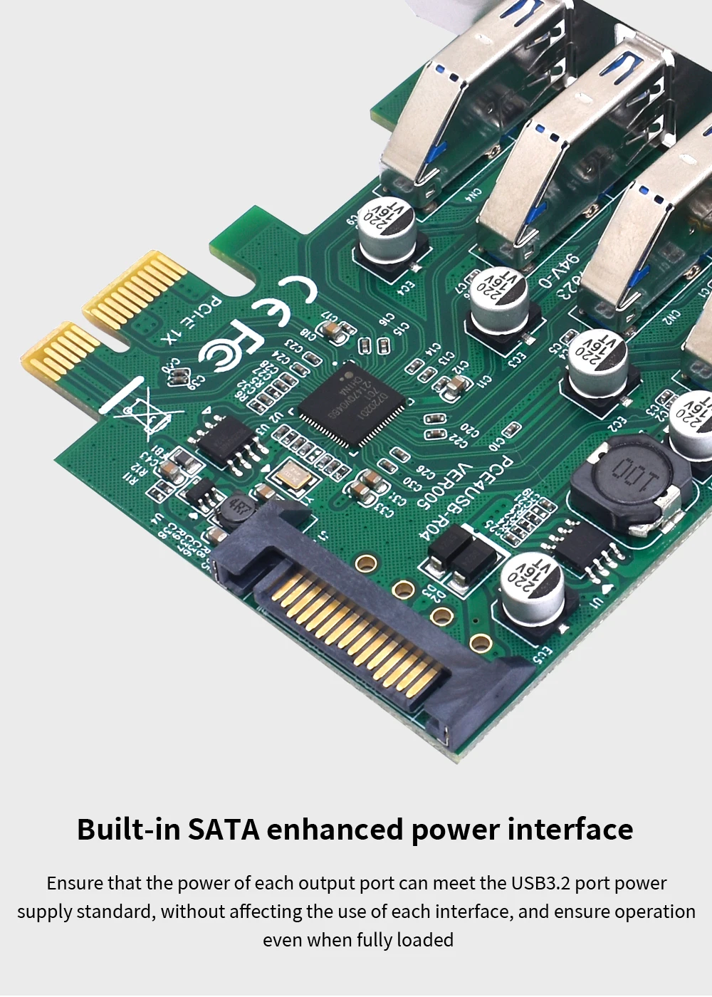 Tarjeta TISHRIC USB 3,2 PCI-E X1 a USB 5Gbps 4 puertos USB 3,2 tarjeta adaptadora D720201 convertidor PCI-E X16 controlador tarjeta adicional
