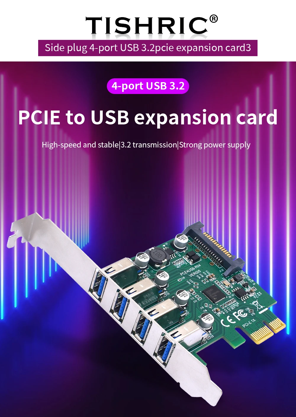 Comprar TISHRIC-tarjeta adaptadora USB 3,2, convertidor PCI-E X1 a USB 5gbps, 4 puertos, D720201, controlador PCI-E X16, tarjeta adicional