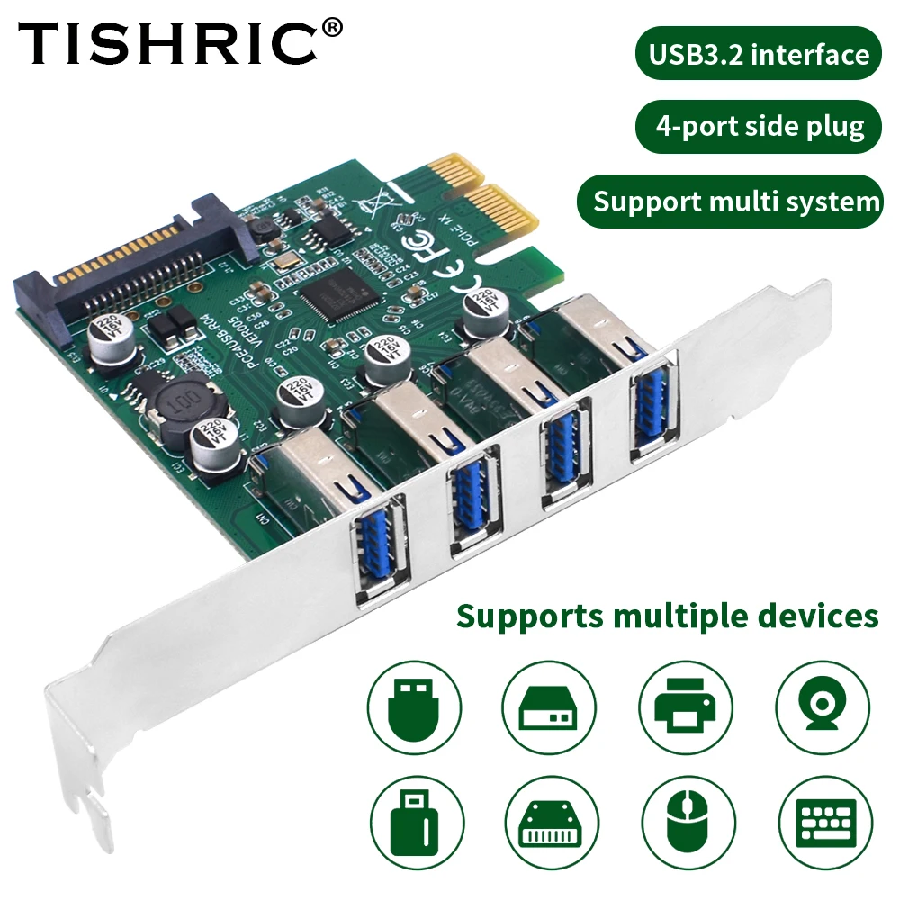 Comprar TISHRIC-tarjeta adaptadora USB 3,2, convertidor PCI-E X1 a USB 5gbps, 4 puertos, D720201, controlador PCI-E X16, tarjeta adicional