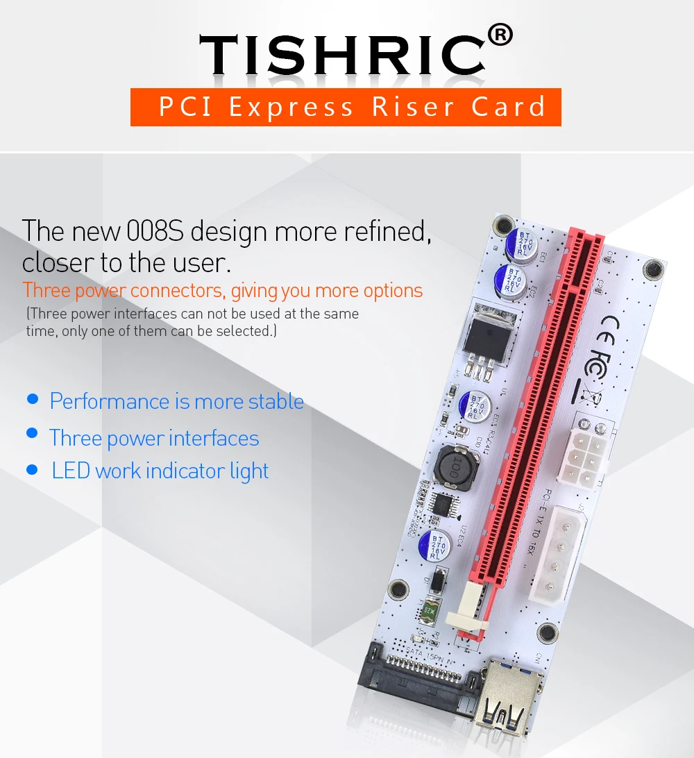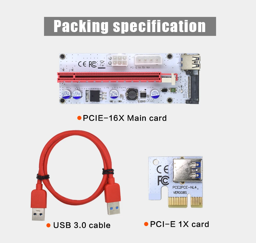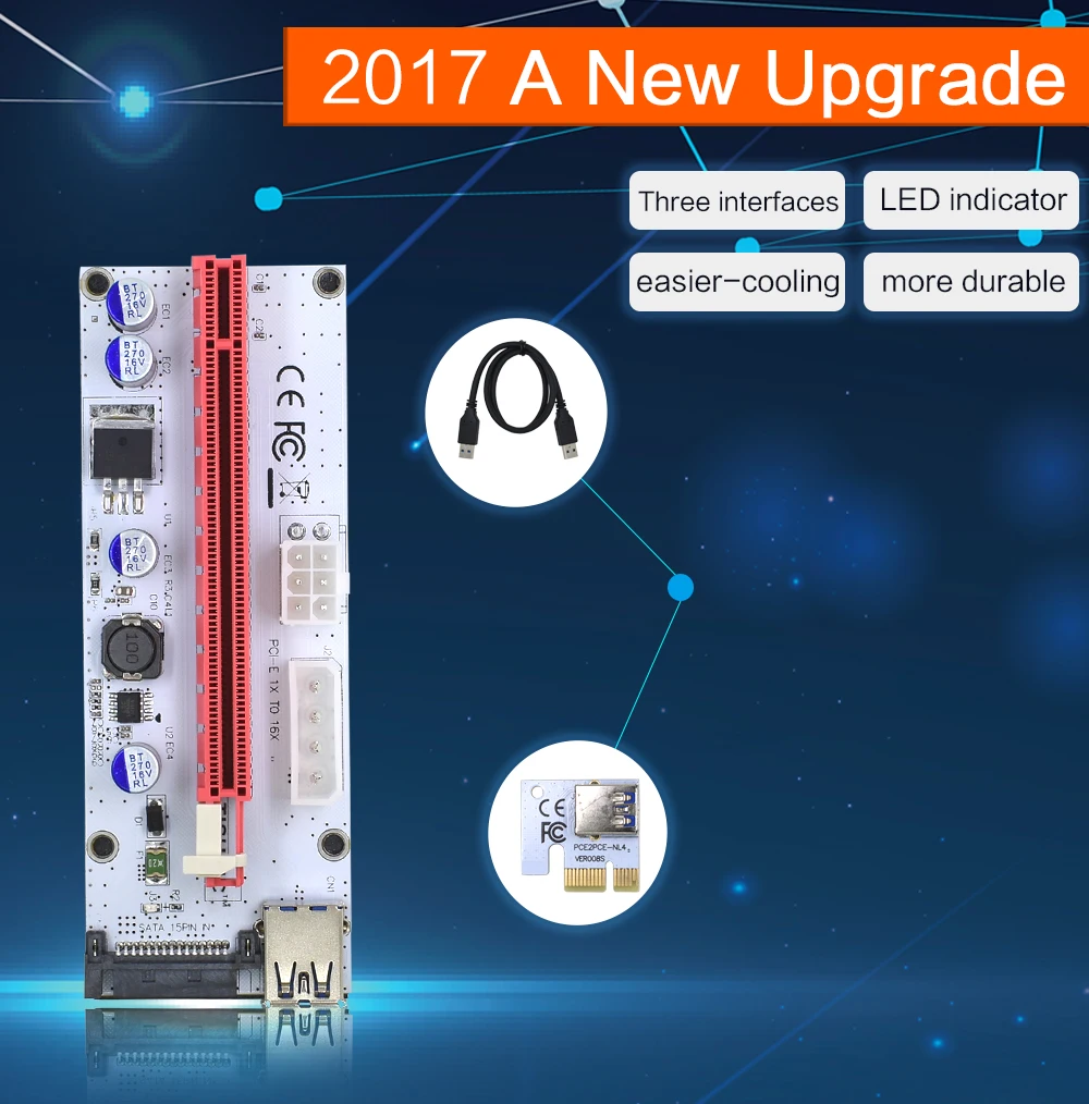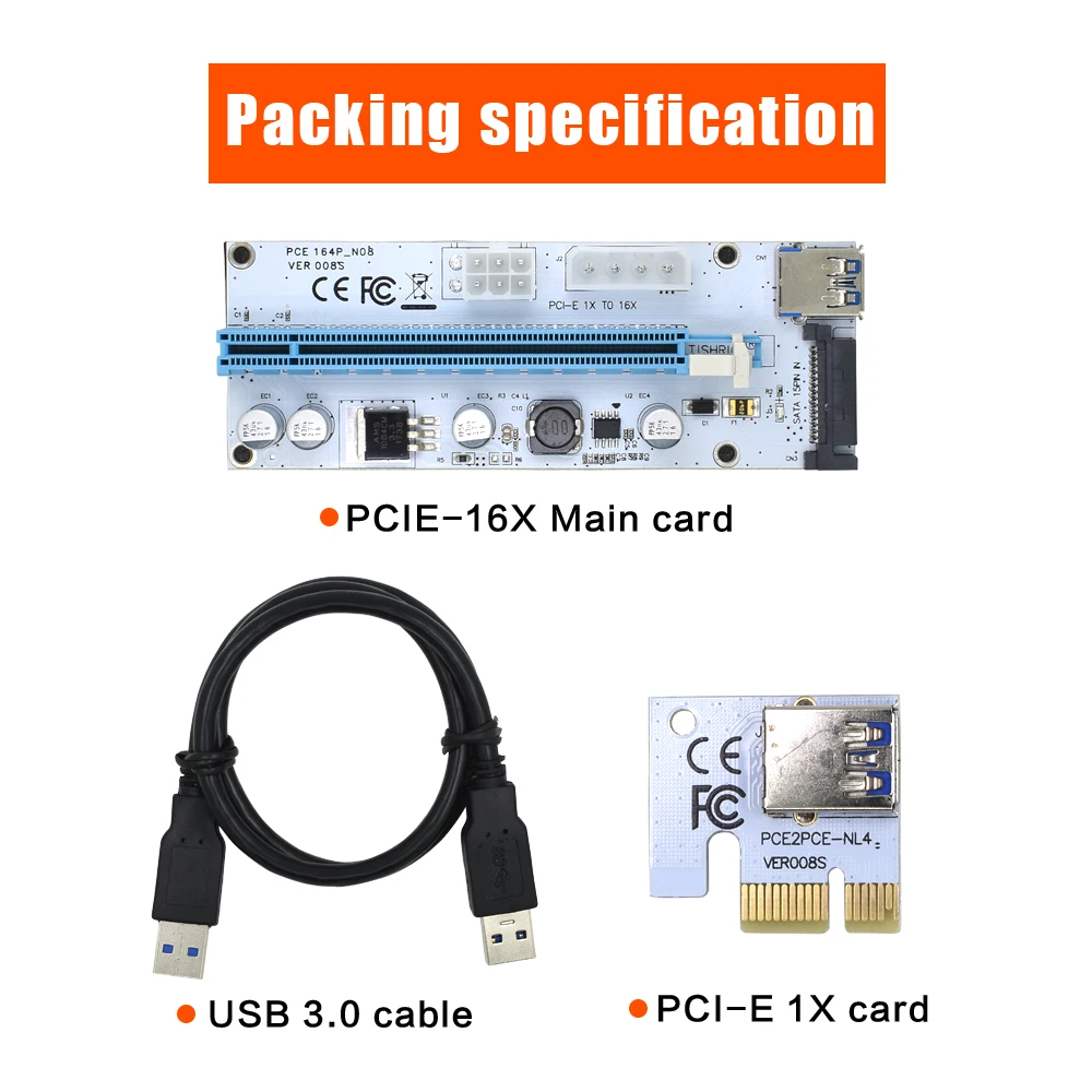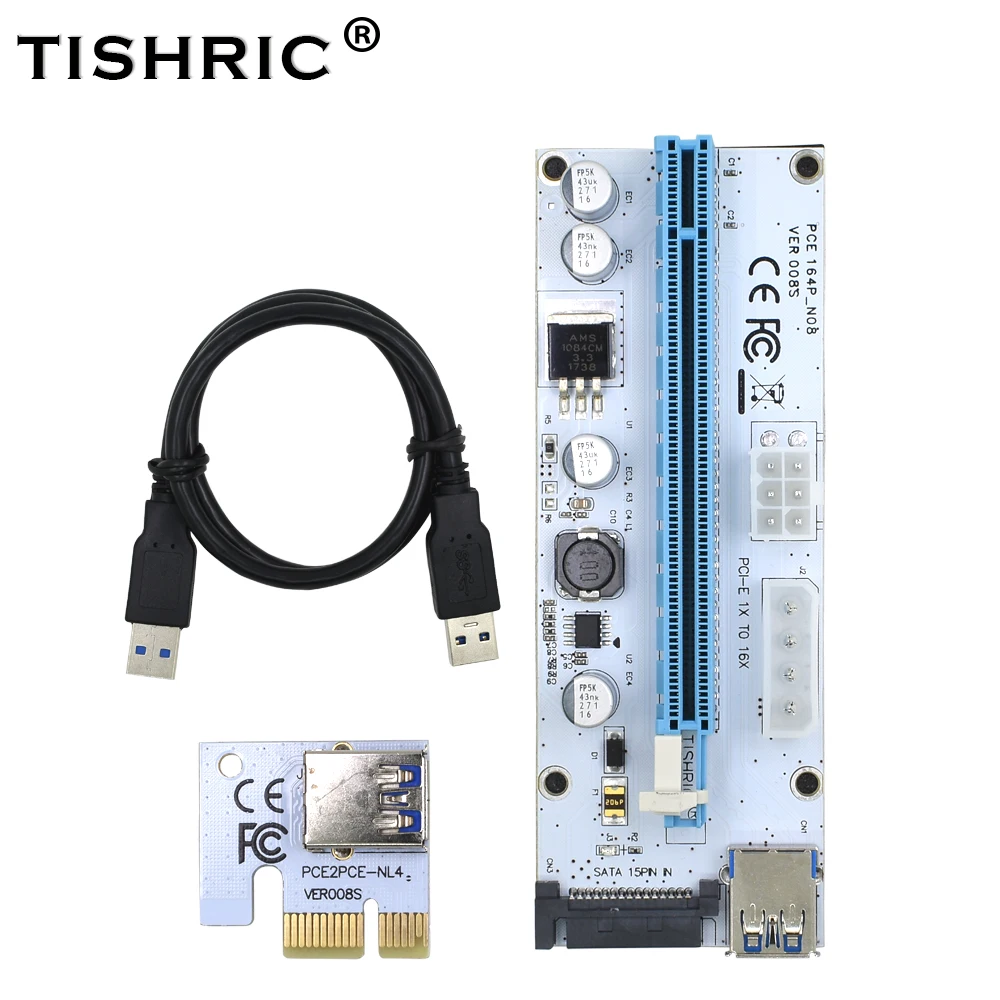 Comprar TISHRIC-Tarjeta elevadora VER008S PCIE PCI-E 008s, 3 en 1, Molex, 4 pines, SATA, 6 pines, 1x a 16x, Cable USB 3,0 para minería BTC ETH