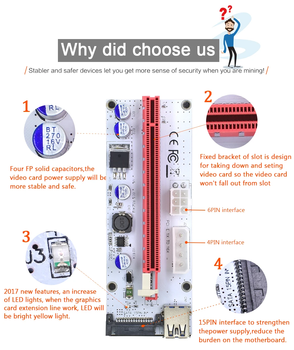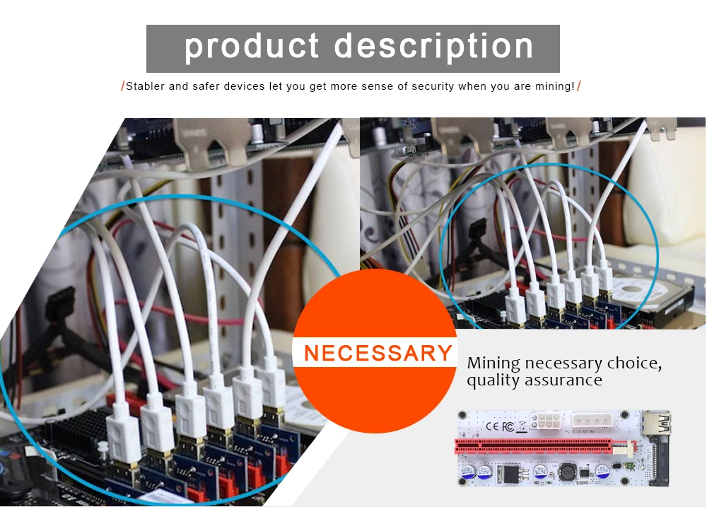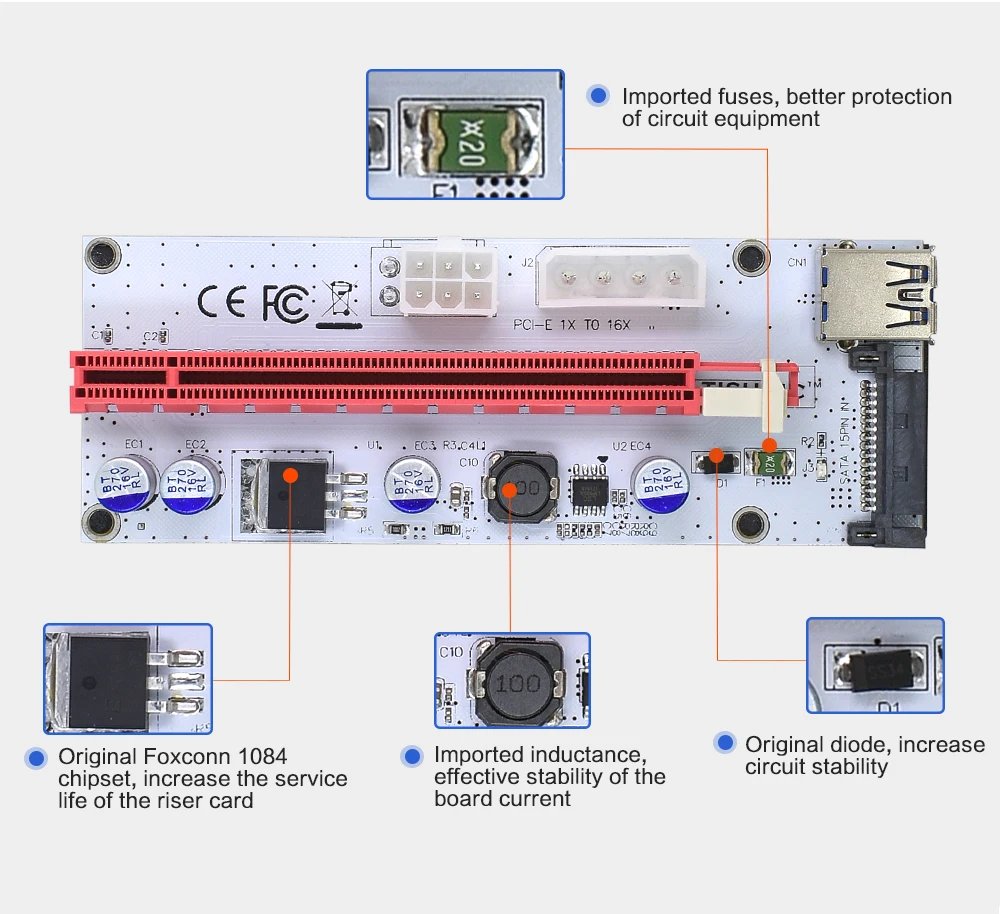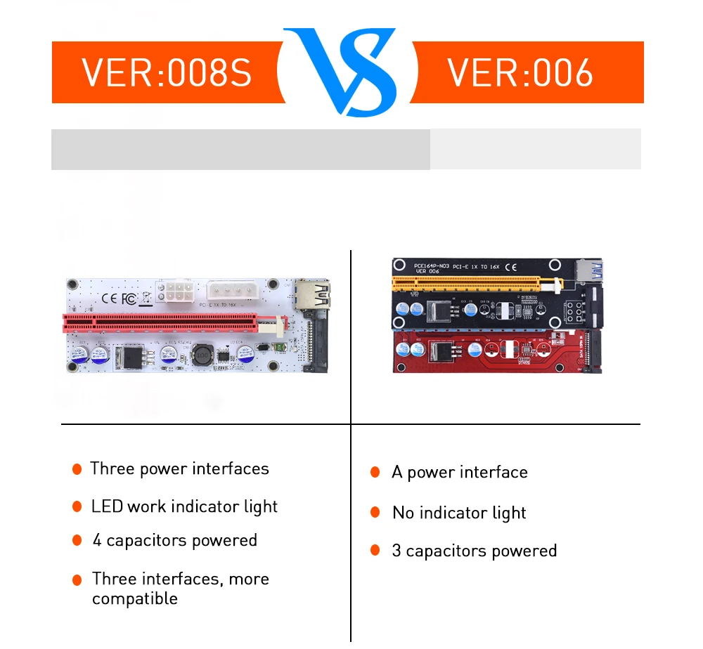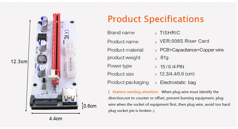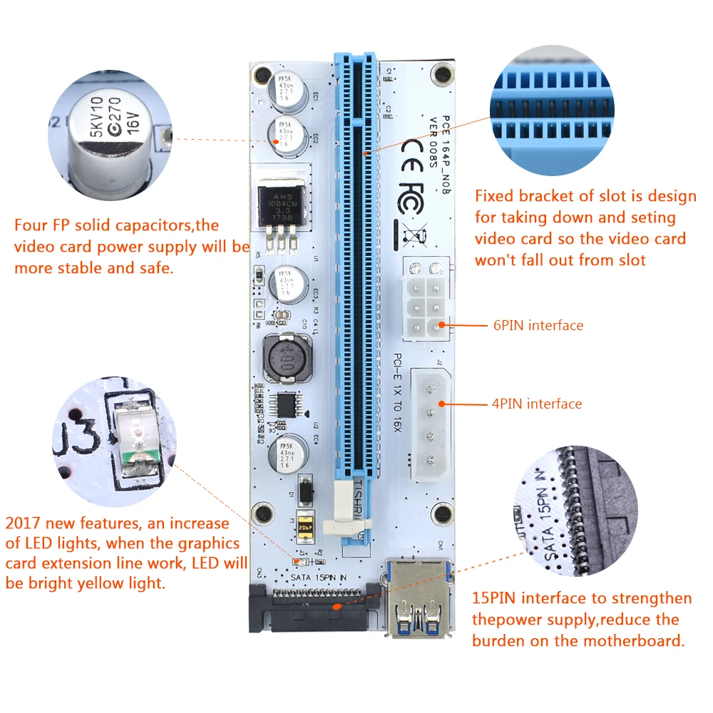 Comprar TISHRIC-Tarjeta elevadora VER008S PCIE PCI-E 008s, 3 en 1, Molex, 4 pines, SATA, 6 pines, 1x a 16x, Cable USB 3,0 para minería BTC ETH