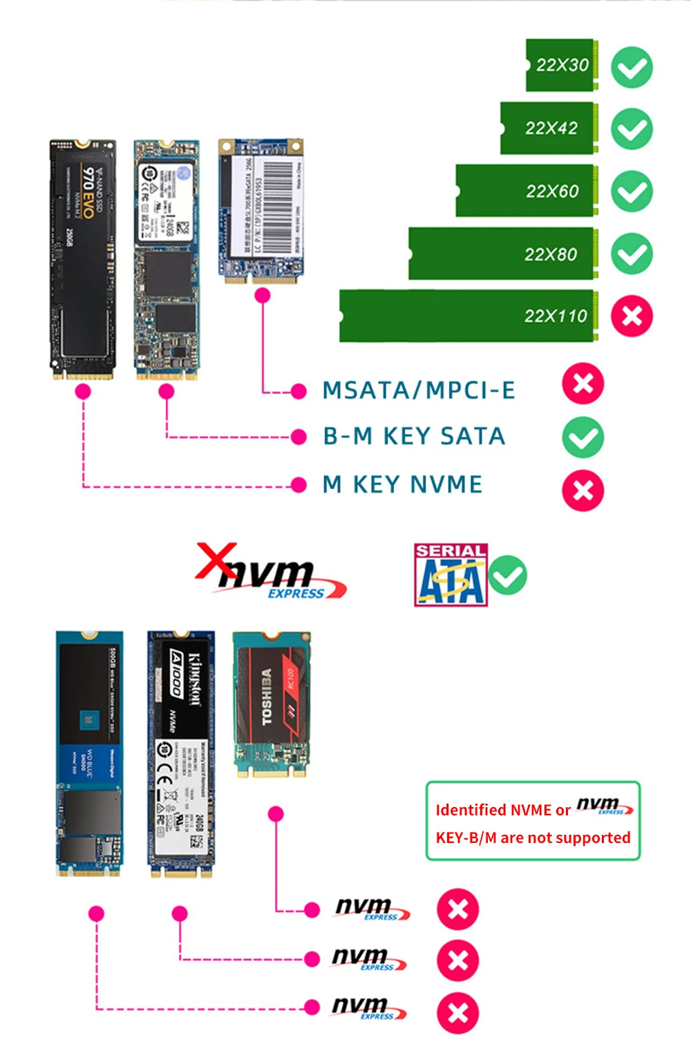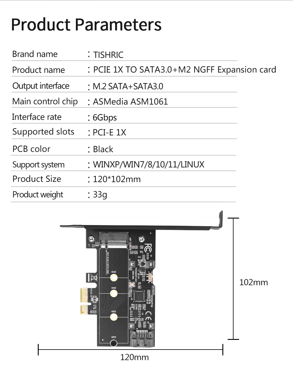 TISHRIC PCIE 1X a SATA3.0 M2 NGFF Tarjeta de expansión PCI Express 1X 16X Slot 6Gbps Interfaz SATA de llave para Windows 7/8/10/11