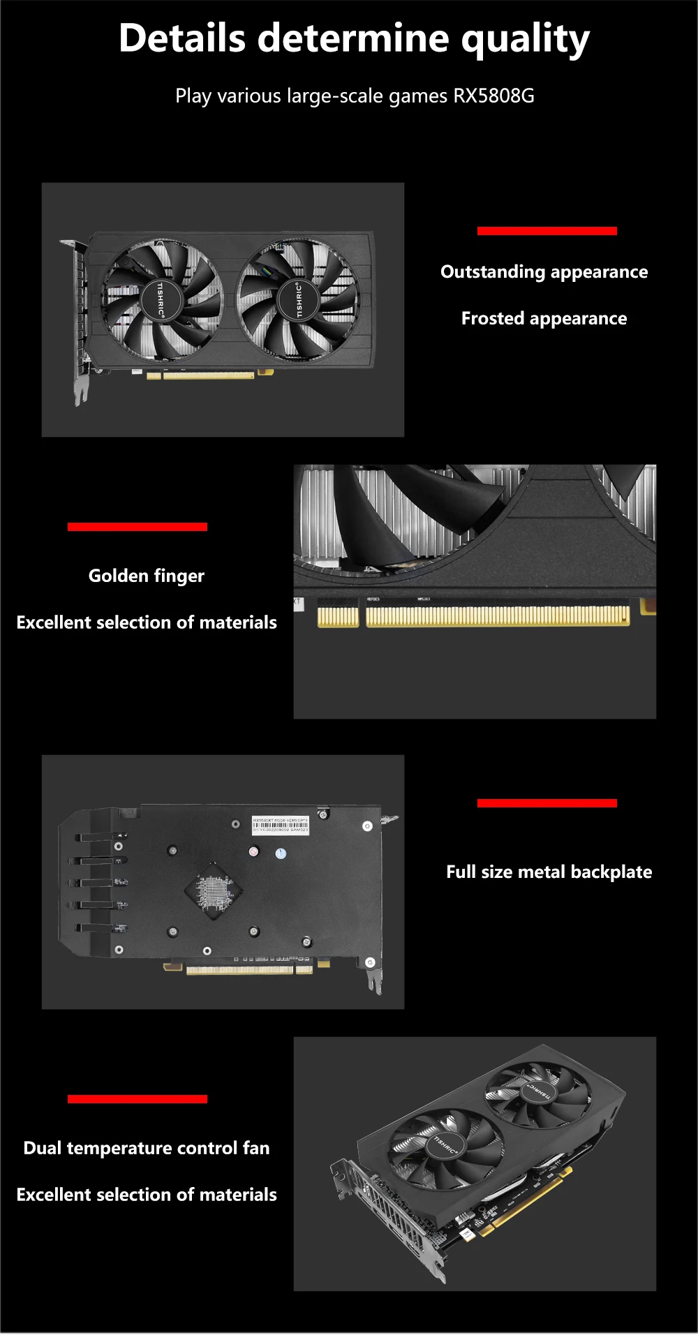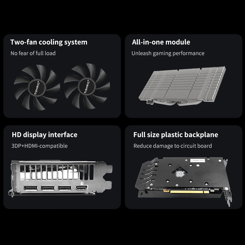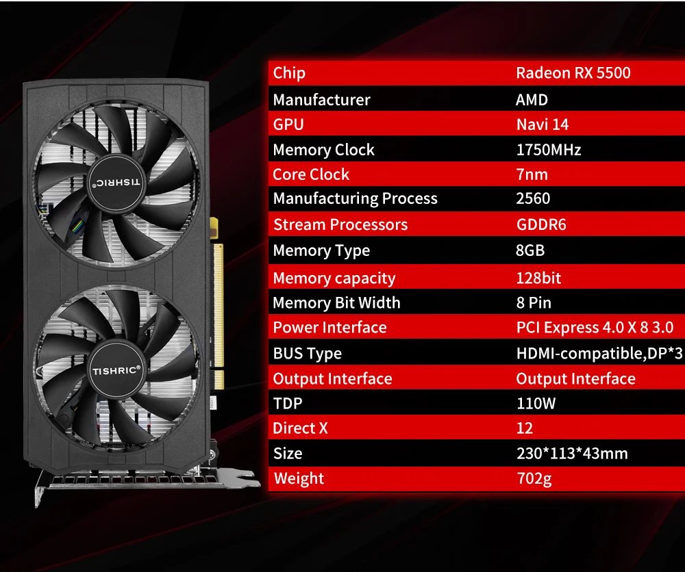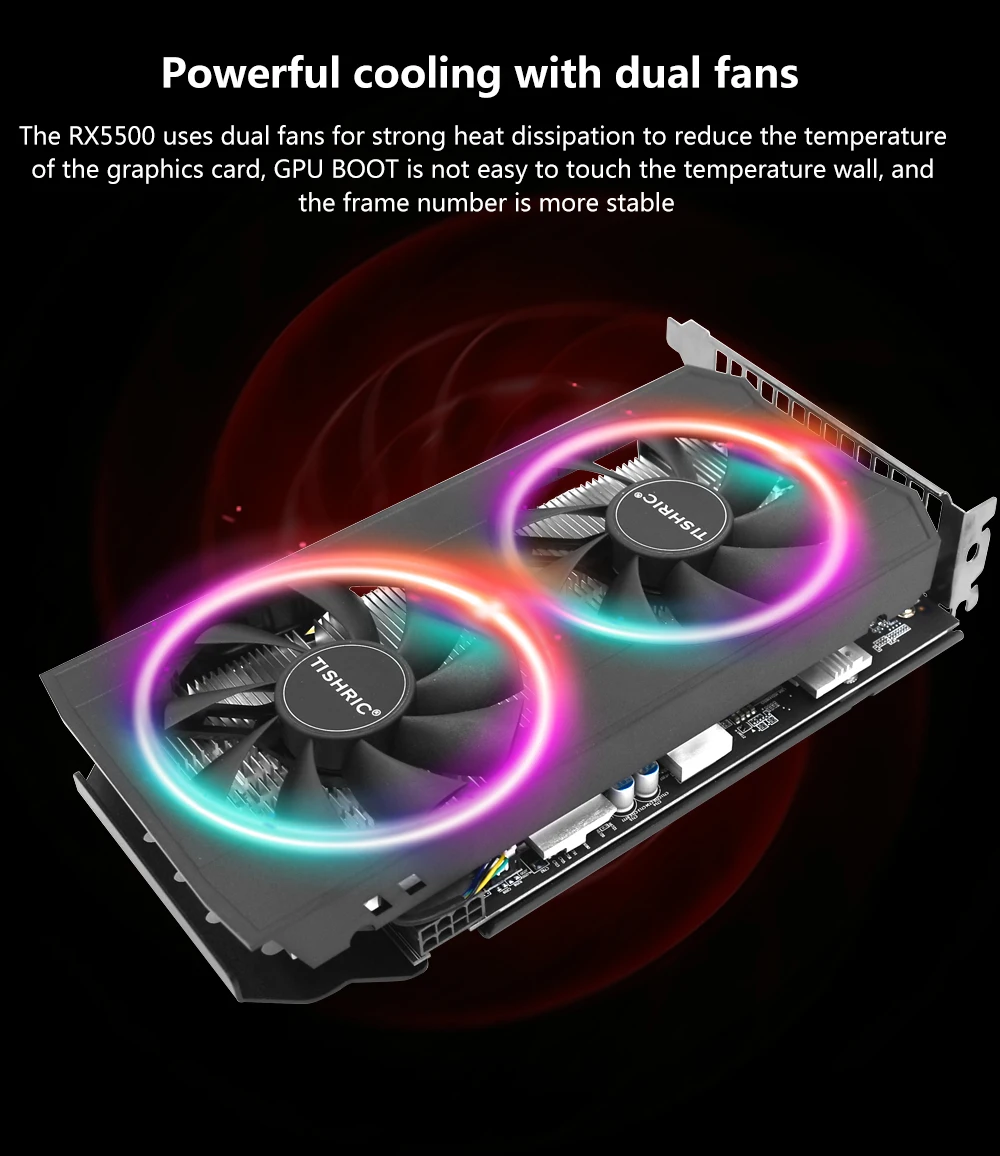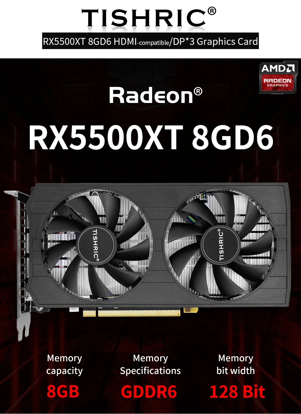 Comprar TISHRIC-tarjeta gráfica RX5500XT, 8GB, GDDR6, 128 bits, AMD Radeon RX 5500, compatible con HDMI + 3DP, 8 pines, RX 5500XT, tarjeta de vídeo para juegos de PC