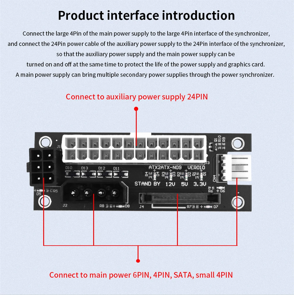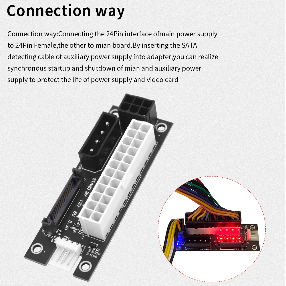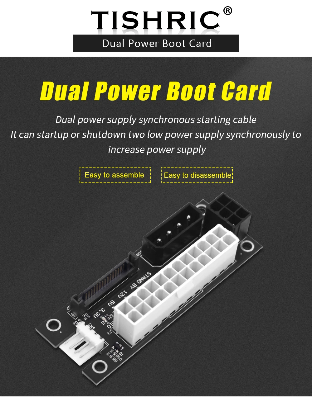 TISHRIC-tarjeta de inicio de sincronización de fuente de alimentación ATX, Cable de extensión de 24 pines a 4 pines, 6 pines, SATA Molex, adaptador de PSU Dual, ADD2PSU
