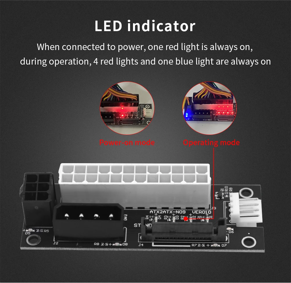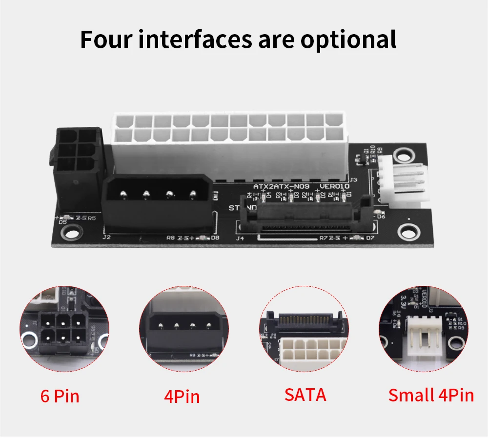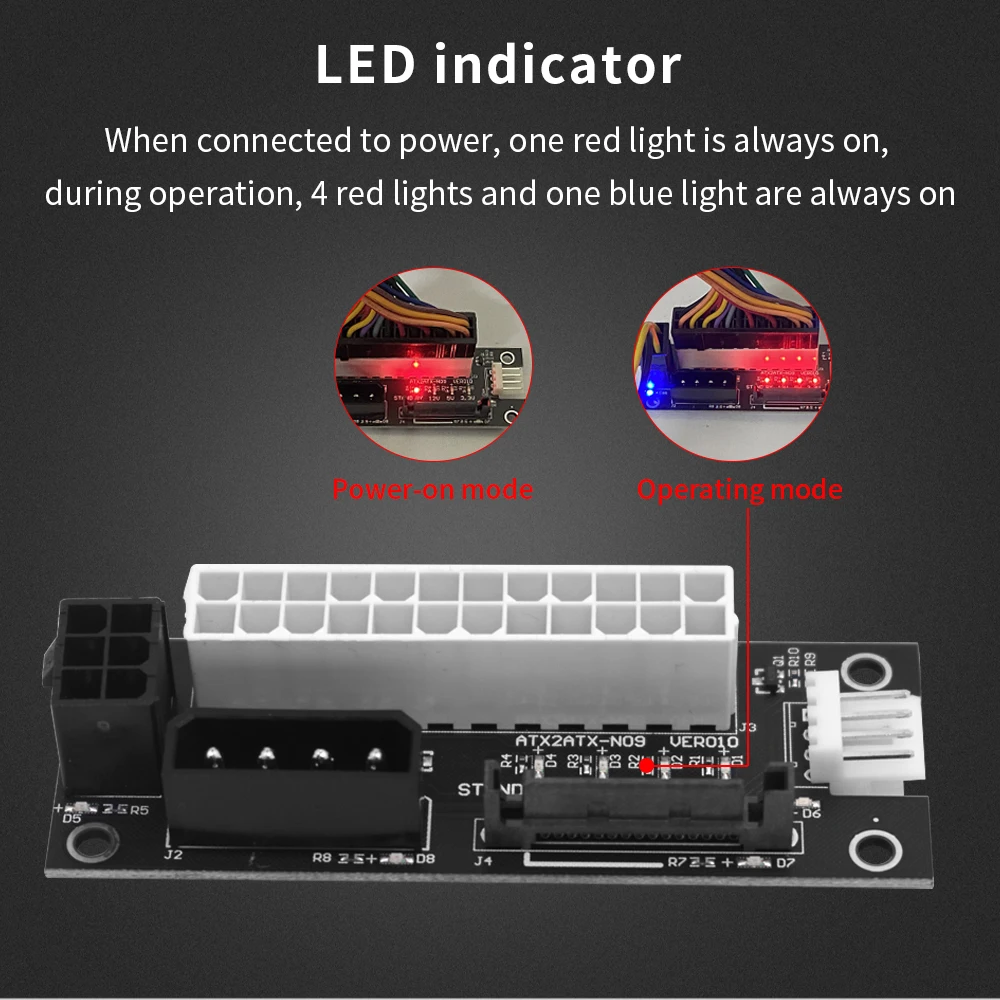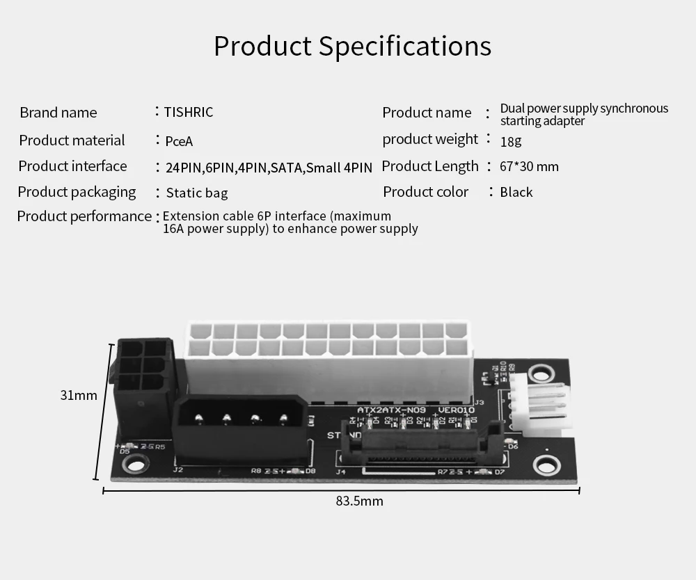 TISHRIC-tarjeta de inicio de sincronización de fuente de alimentación ATX, Cable de extensión de 24 pines a 4 pines, 6 pines, SATA Molex, adaptador de PSU Dual, ADD2PSU