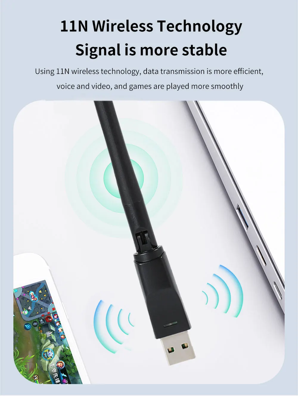 Comprar TISHRIC-tarjeta de red WiFi USB 7601, 2,4 GHZ, 150Mbs, adaptador WiFi USB2.0, receptor Ethernet para PC y portátil