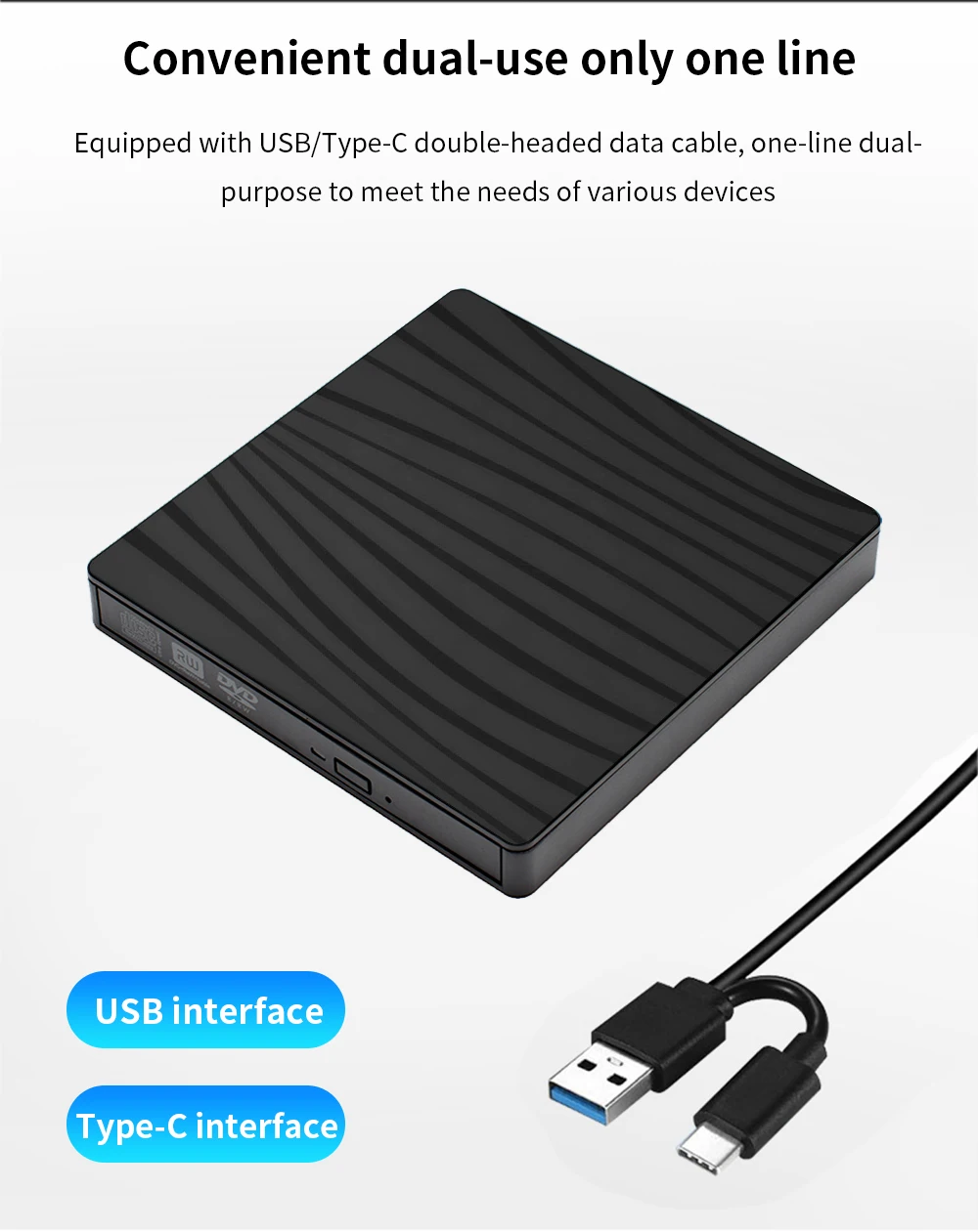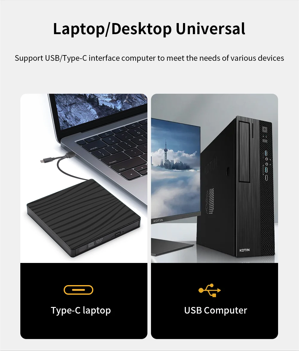 TISHRIC Tipo C/USB 3.0 Reproductor de CD y DVD externo RW Unidad de grabador de CD de DVD Unidad de CD externa para computadora portátil de escritorio