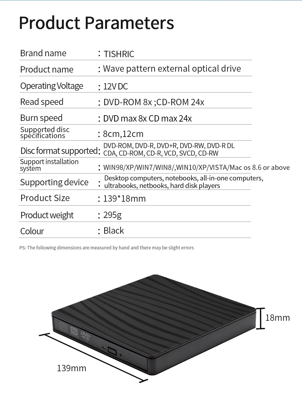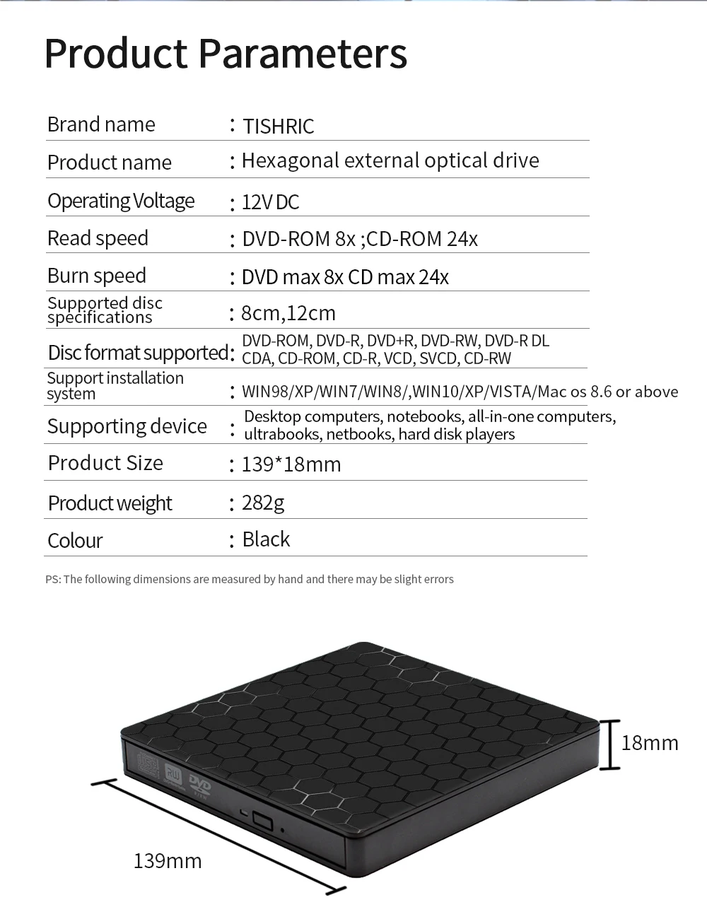 Nombre del producto: unidad óptica externa