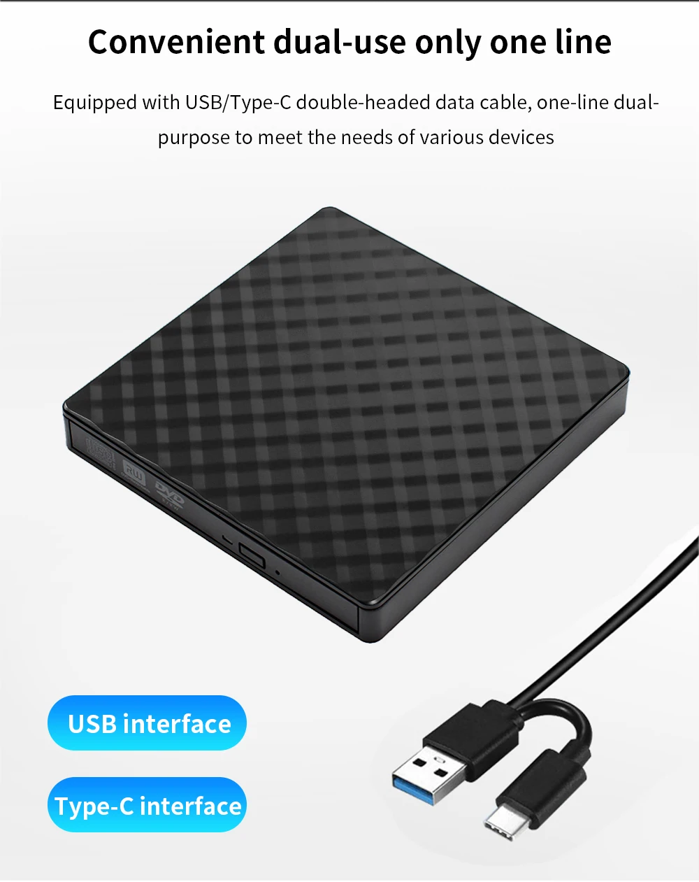 TISHRIC CD DVD Drive USB 3,0 Tipo C Cable CD DVD RW ROM Externo Óptico CD DVD Reader Player Compatible IMac PC Desktop Laptop