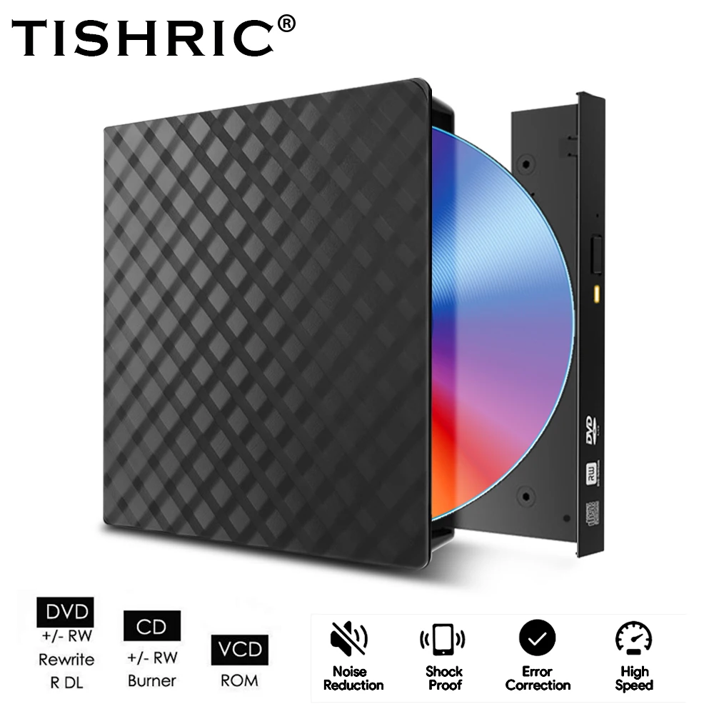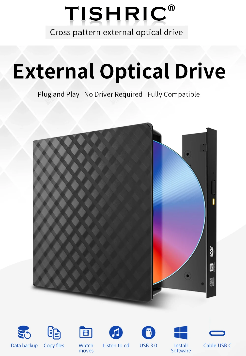 Comprar TISHRIC-unidad de CD y DVD USB 3,0, Cable tipo C, CD, DVD, RW, ROM, reproductor óptico externo, Compatible con IMac, PC, ordenador de escritorio y portátil