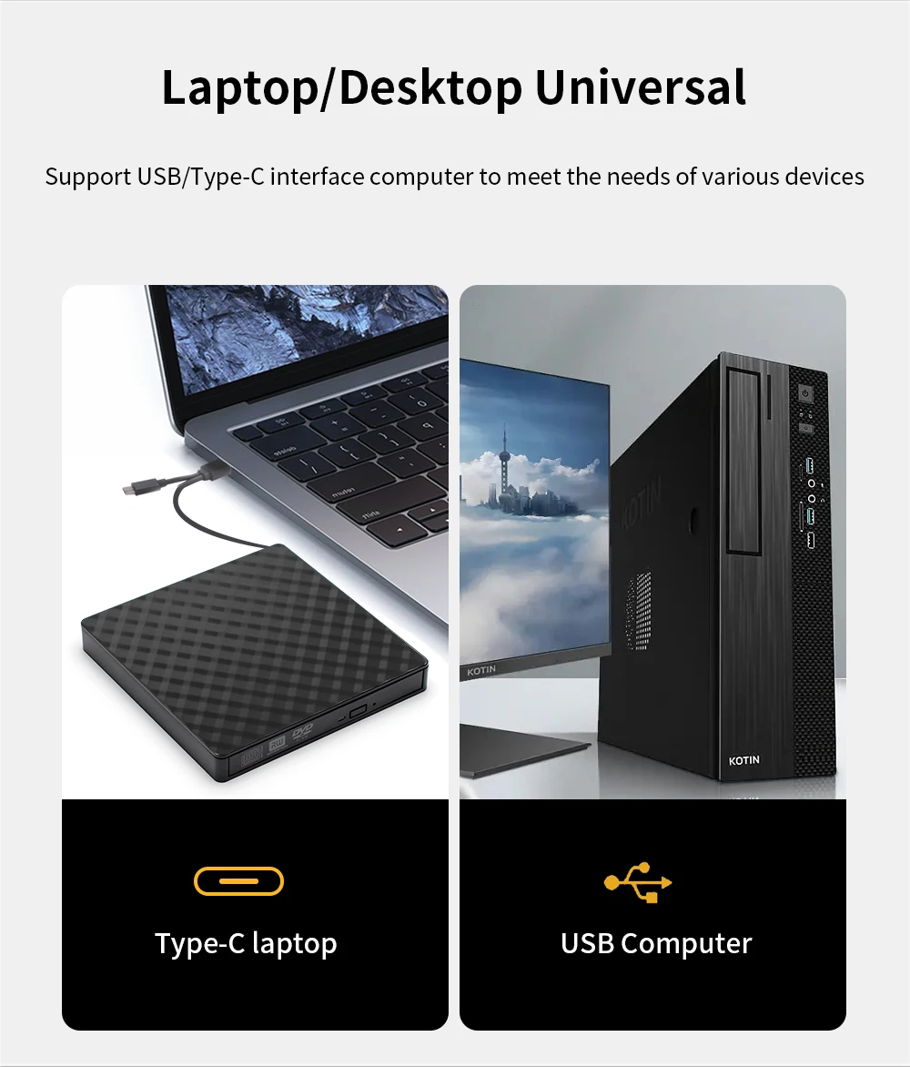 Unidad óptica externa TISHRIC USB 3,0 Tipo-C Cable CD DVD Drive Reader Player CD DVD RW ROM Compatible para IMAC Desktop Laptop