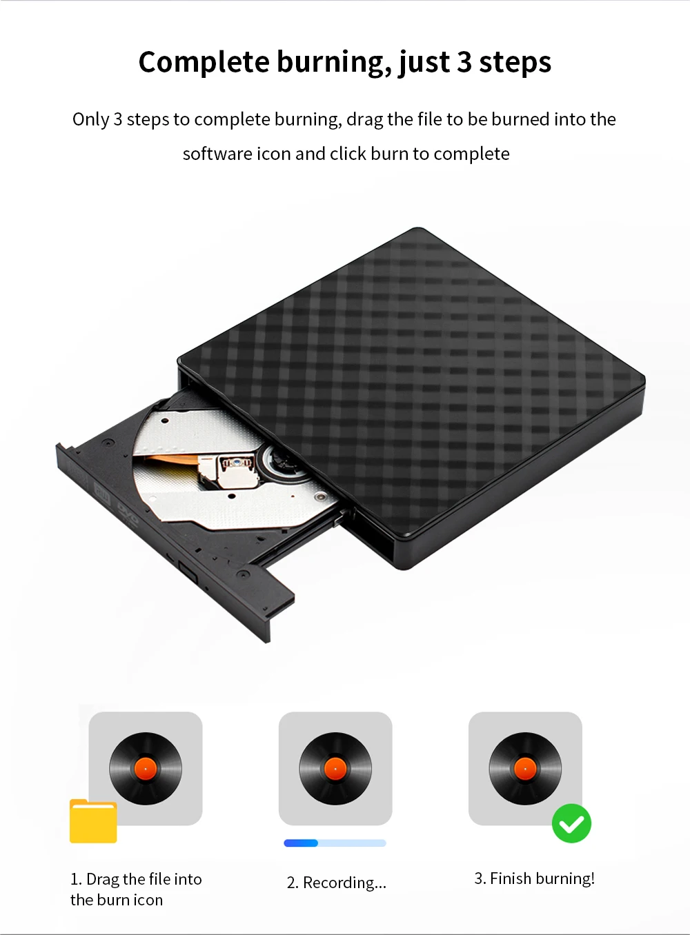 Comprar TISHRIC-Unidad óptica externa USB 3,0, Cable tipo C, lector de CD, DVD, reproductor de CD, DVD, RW ROM, Compatible con IMAC, ordenador portátil de escritorio