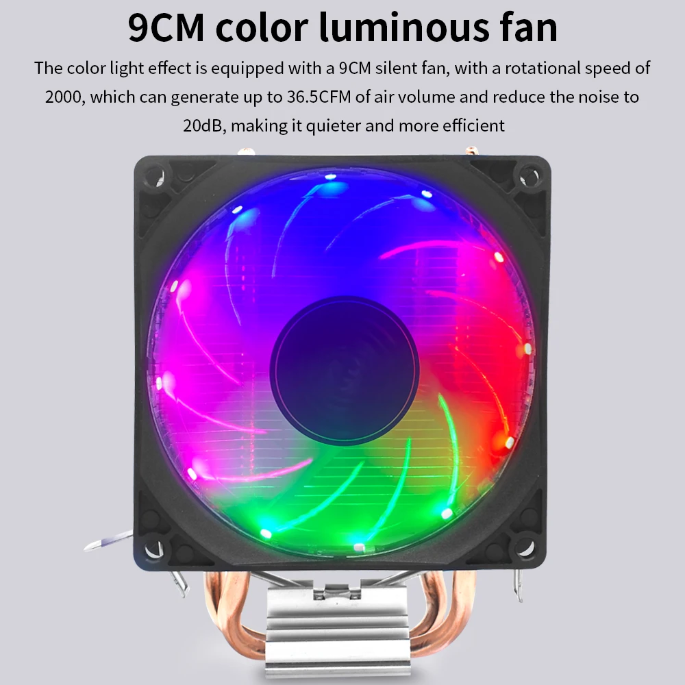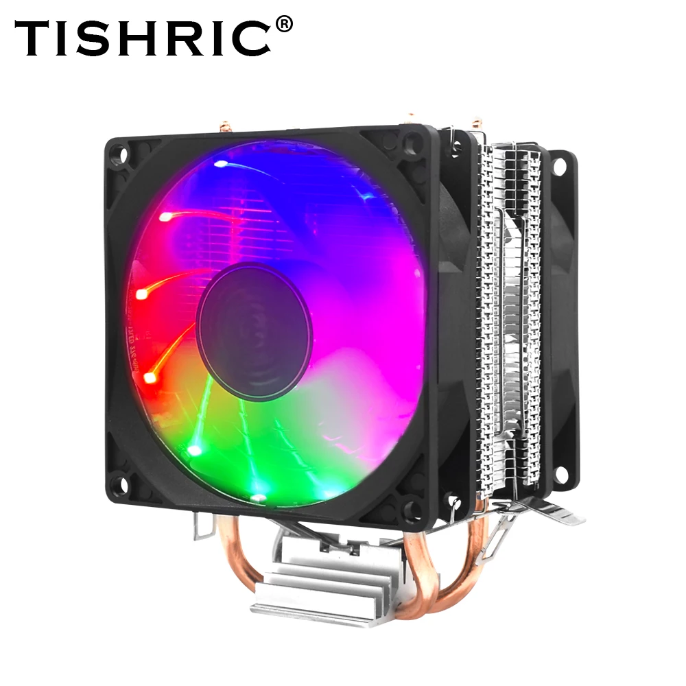 Comprar TISHRIC-ventilador de refrigeración de CPU, 2 tubos de calor, 3 pines, PWM, RGB, para Intel AM3, AM4, LGA1150, 115X, 1700, 775