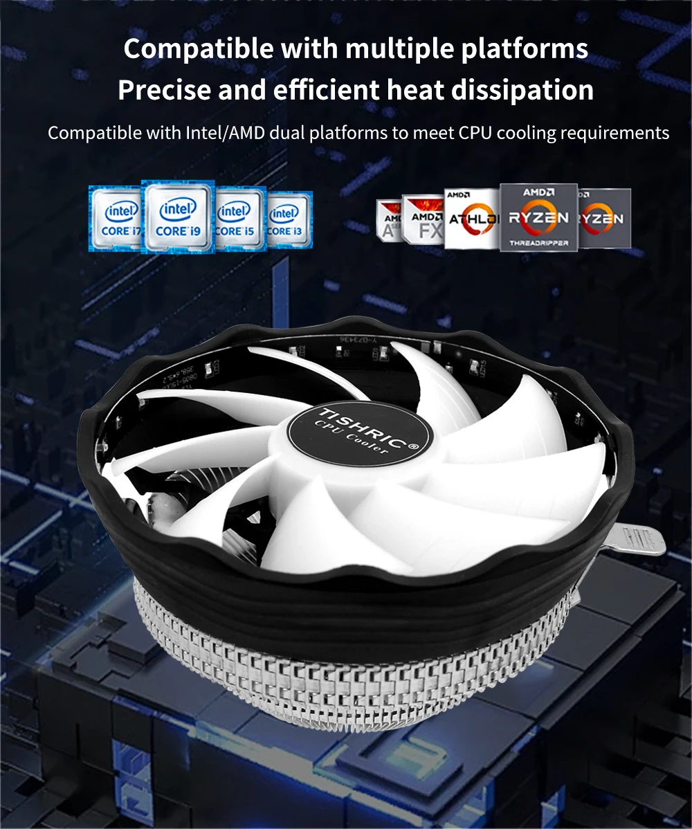 Ventilador de refrigeración de CPU TISHRIC, procesador de aluminio de 3 pines y 120mm, 150W para Intel LGA 1700 1200 1150 1151, disipador de calor, ventilador enfriador de CPU, placa base