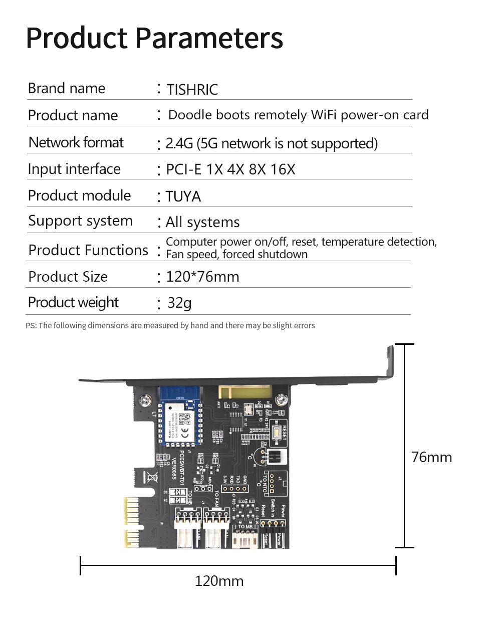 TISHRIC Tuya Wifi PC botón de encendido interruptor de reinicio 1X tarjeta PCIE para aplicación de ordenador Destop Control remoto compatible con Alexa