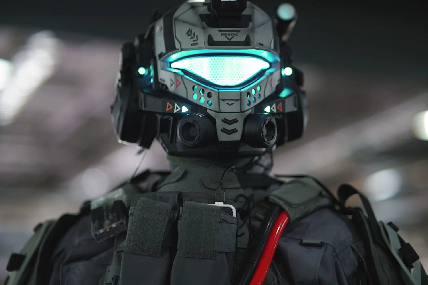 The helmet has 9 lighting systems, including eyepiece lighting and ARGB mobile app color matching, which supports custom color brightness.