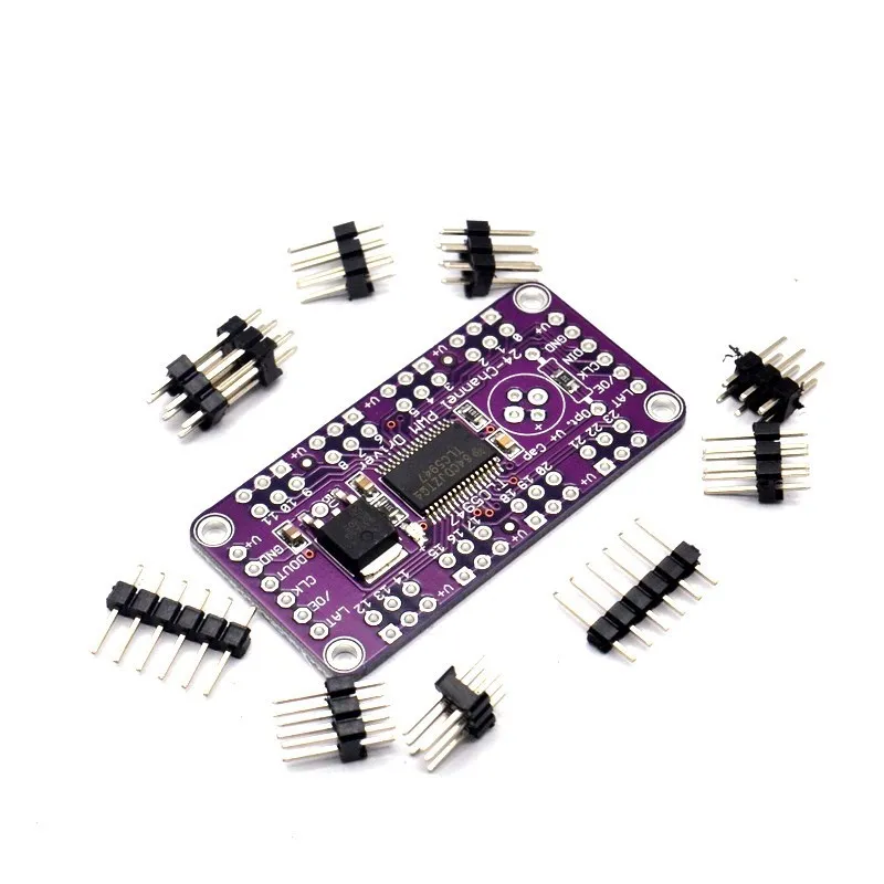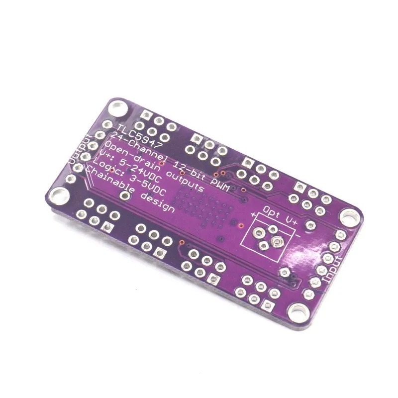 JMCU-5947 is a 24-channel, constant-current sink LED driver. Each channel is individually adjustable with 4096 pulse-width modulated (PWM) steps. PWM control is repeated automatically with the programmed grayscale (GS) data. GS data are written via a serial interface port. The current value of all 24 channels is set by a single external resistor.