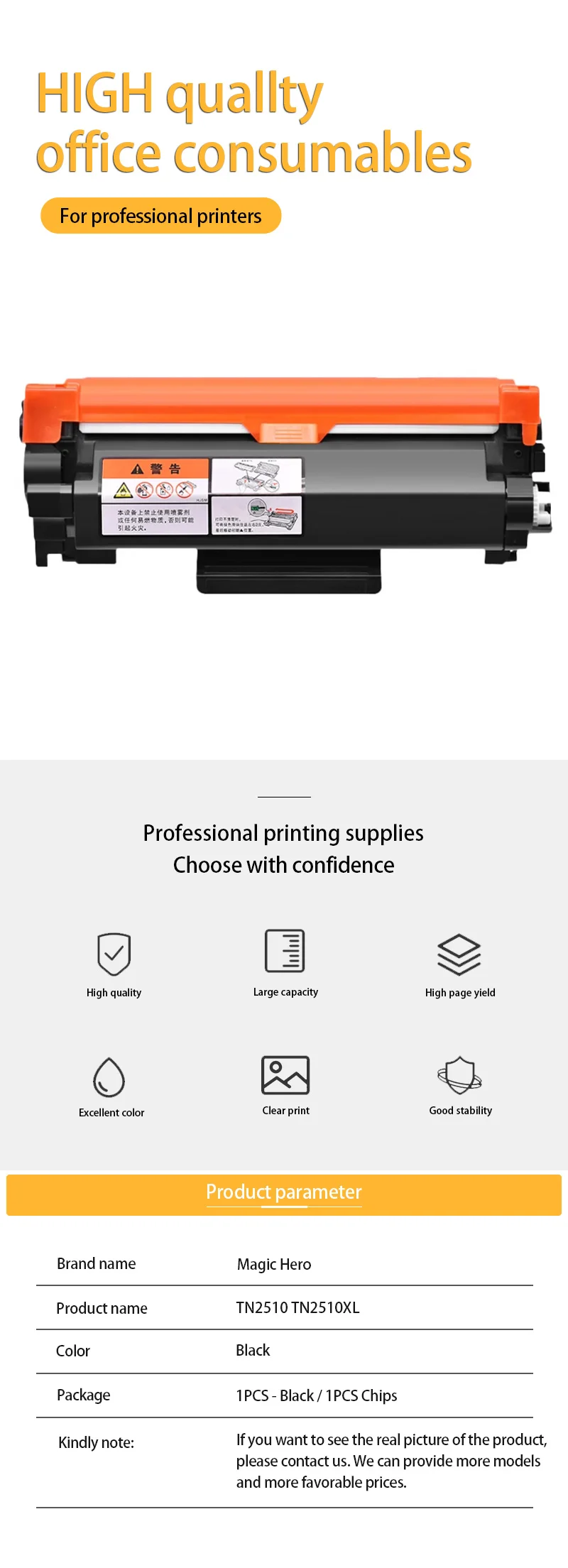 Comprar TN2510 TN2510XL con cartucho de tóner Compatible con Chip para impresora de inyección de tinta Brother MFC-L2860DW MFC-L2800DW DCP-L2660DW DCP-2620