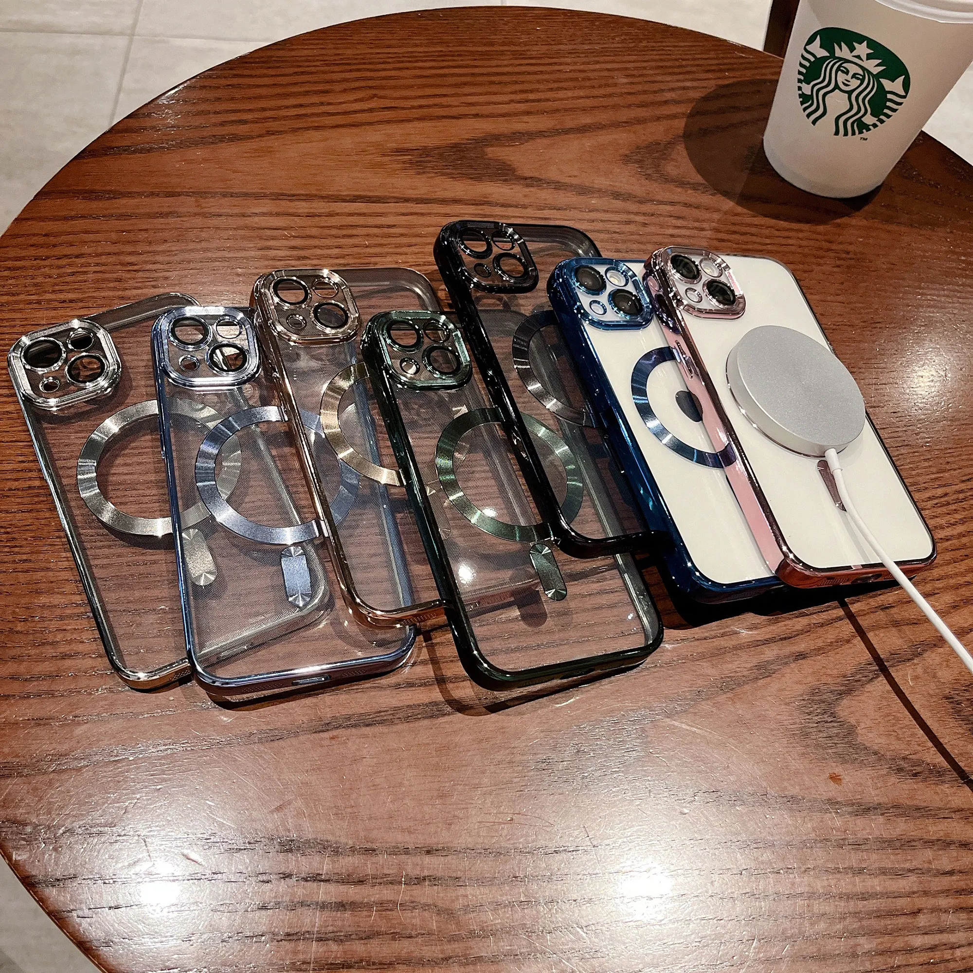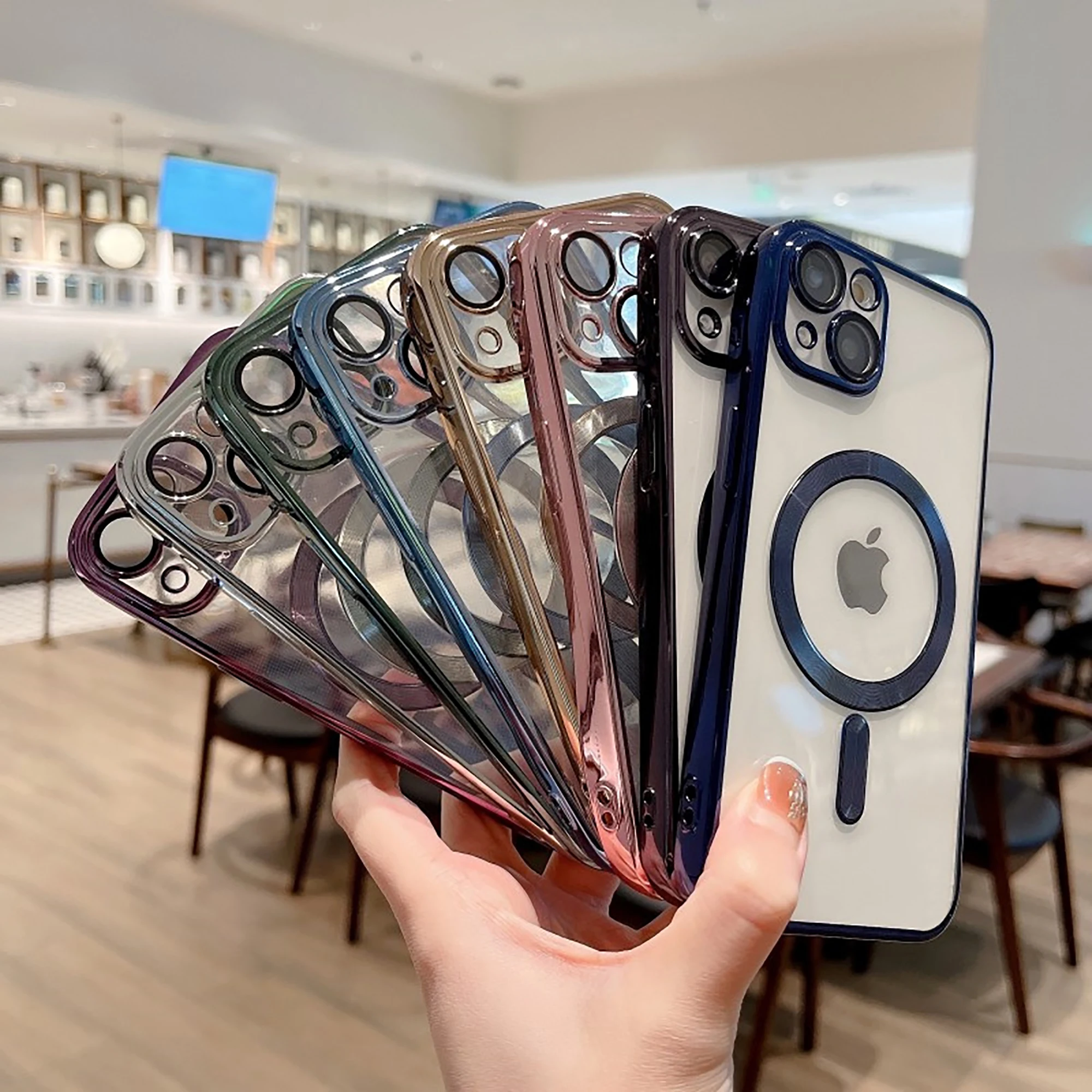 Tobebest Magsafe-funda de teléfono transparente con revestimiento magnético, accesorios de carga inalámbrica para Apple iPhone 15 14 13 11 12 Pro Max Plus