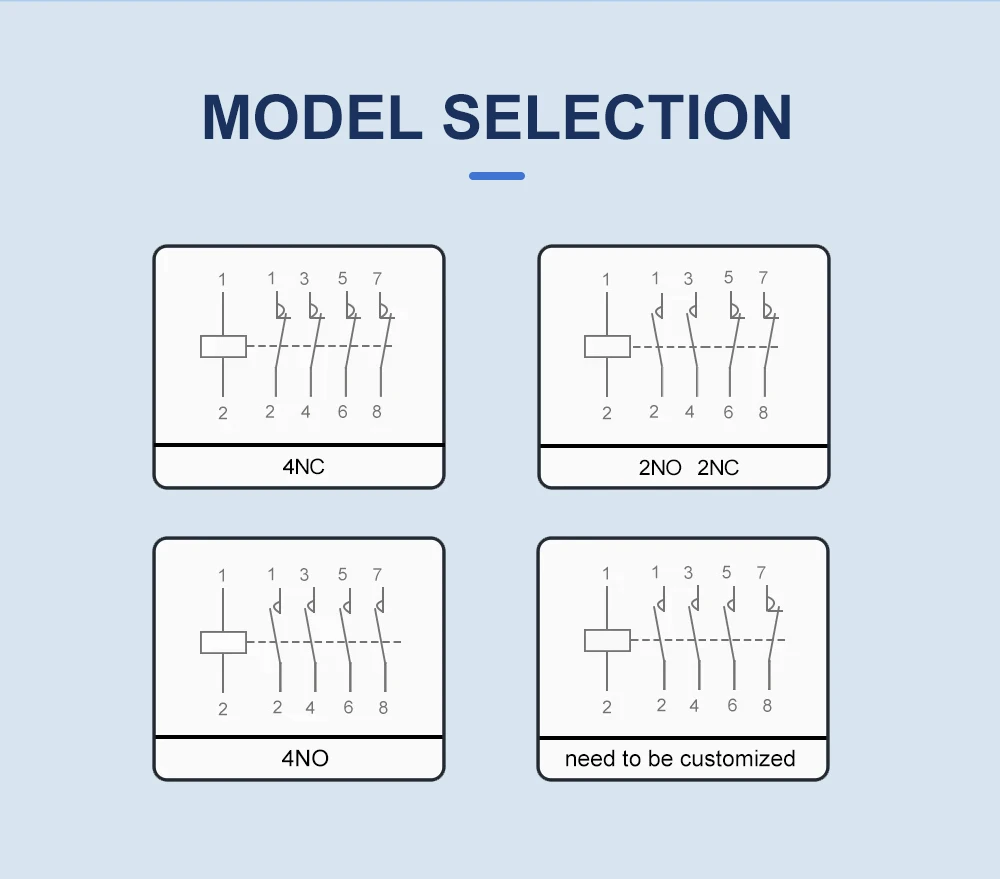 1.Clasificación eléctrica Corriente: hasta 20A, 25A, 32A, 40A, 63A,